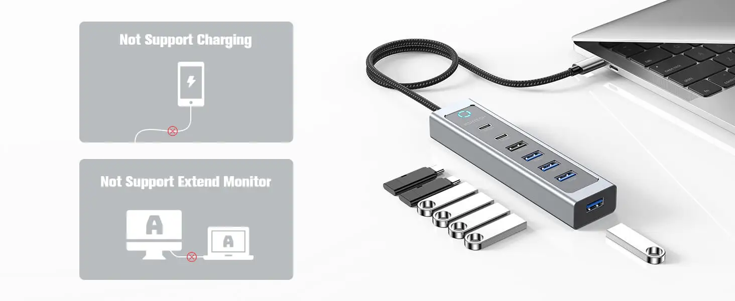 2.USB 허브는 데이터 전송 전용이며 충전 및 비디오 출력을 지원하지 않습니다.