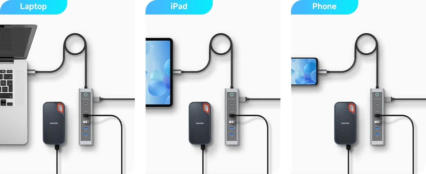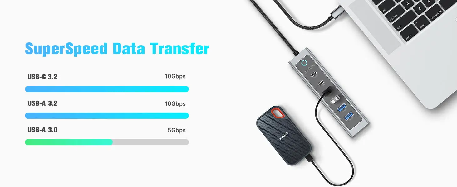 초고속 데이터 전송:최대 10Gbps 또는 5Gbps 의 여러 파일 전송 속도를 즐기십시오. HD 사진, 비디오 및 파일 전송은 최대 효율을 위해 몇 초 만에 완료할 수 있으며 다양한 연결 요구 사항을 충족합니다.