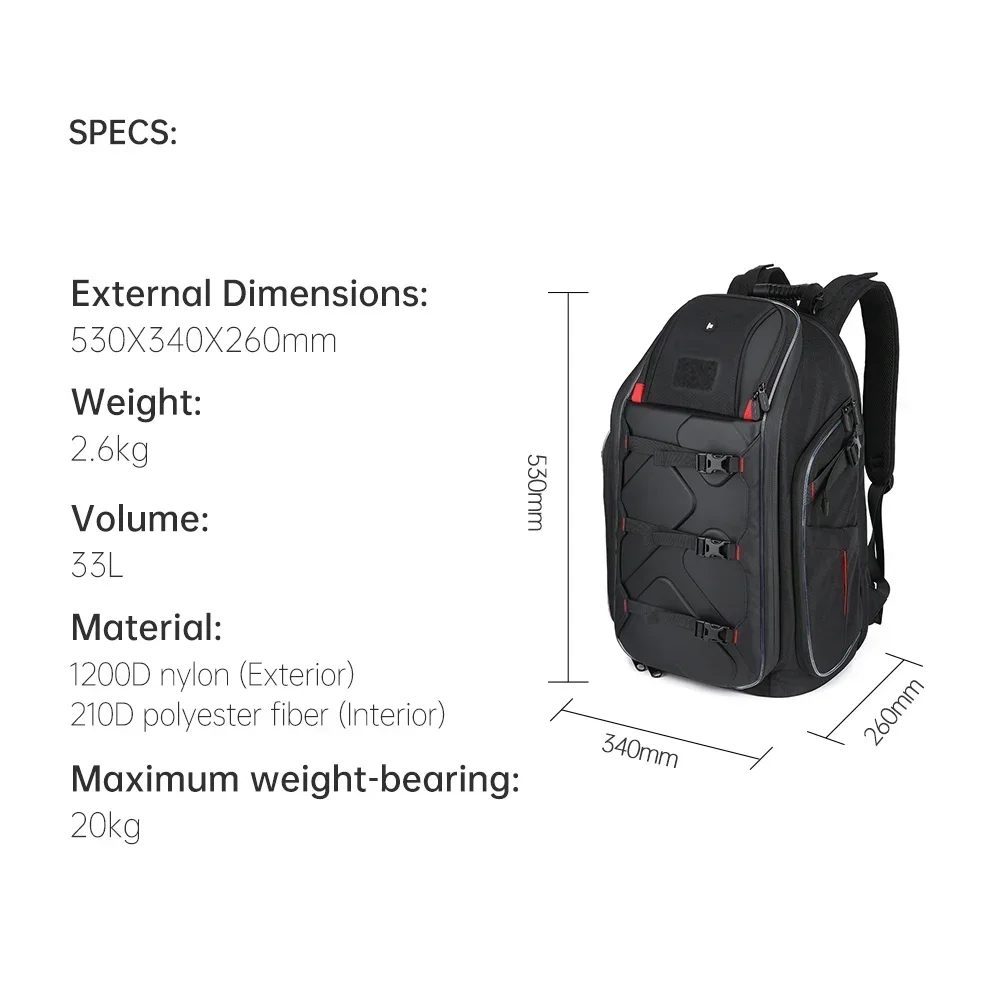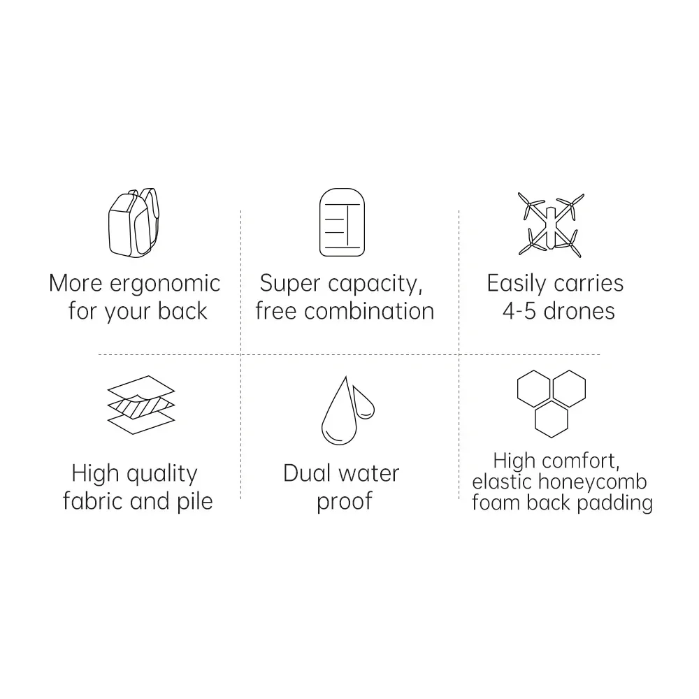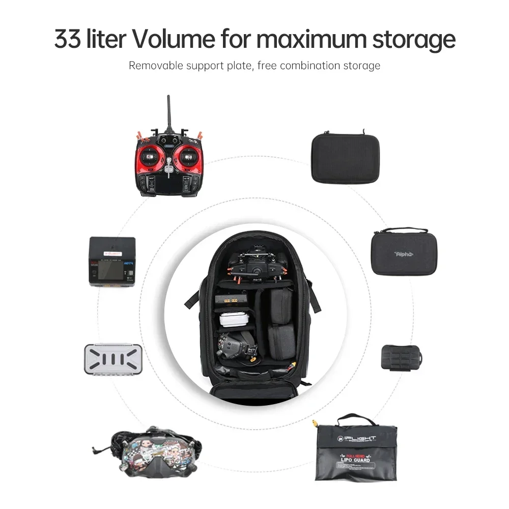 FPV 드론용 iFlight 백팩은 어디를 가든 장비를 운반하는 데 이상적입니다.모든 장비에 맞게 크기를 조정할 수 있는 교체 가능한 칸막이를 사용하여 직면할 수 있는 모든 모험에 적응할 준비를 하세요.33리터의 거대한 용량으로 필요한 경우 드론을 가방 안에 넣을 수도 있습니다.외부에 보호 파우치가 있어 프로펠러나 도구와 같은 크고 작은 부품을 보관할 수 있으며 재킷과 두 번째 속옷(250m 고층 건물 다이빙을 하려는 경우)에 적합합니다.