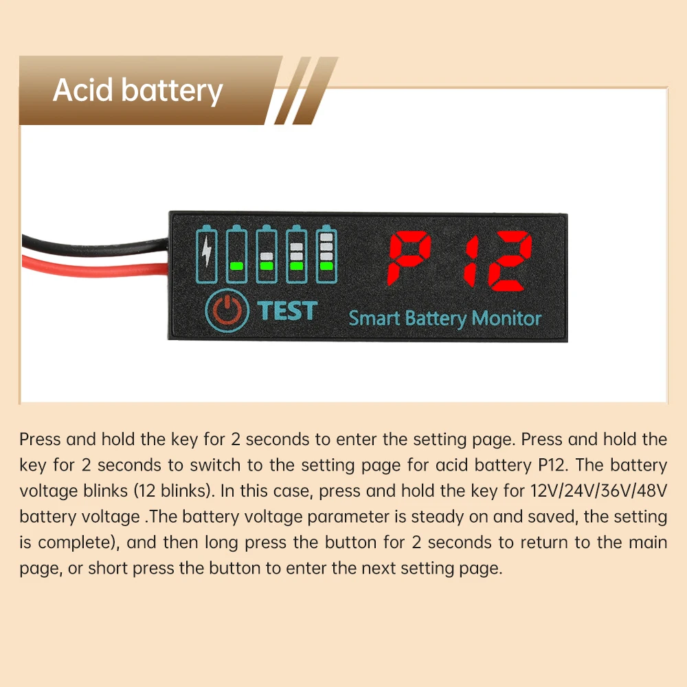 산성 배터리 P 측정: 12V/24V/36V/48V