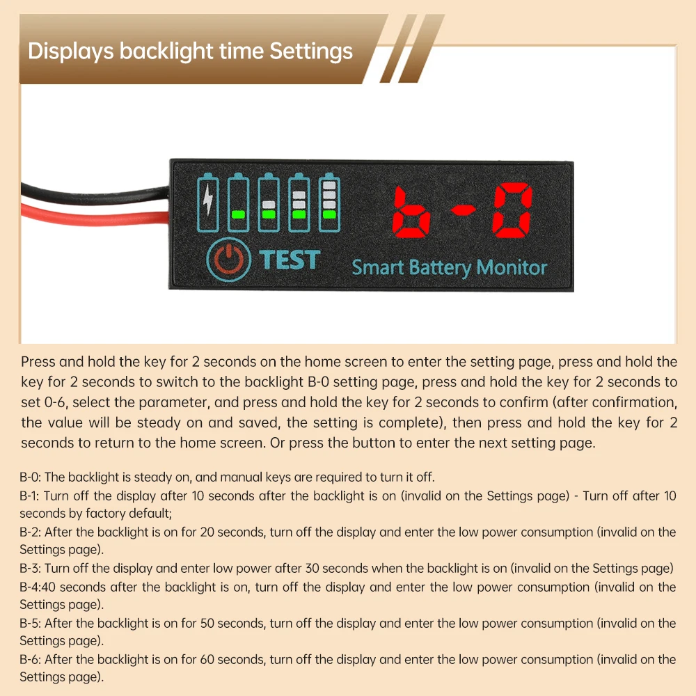 3.백라이트 시간 설정, 에너지 절약 및 환경 보호: 내장된 조정 가능한 디스플레이 백라이트 시간 설정 기능을 통해 사용자는 주변 조명 및 개인 습관에 따라 백라이트 지속 시간을 조정하여 배터리 표시기 보드의 서비스 수명을 연장할 수 있습니다.
