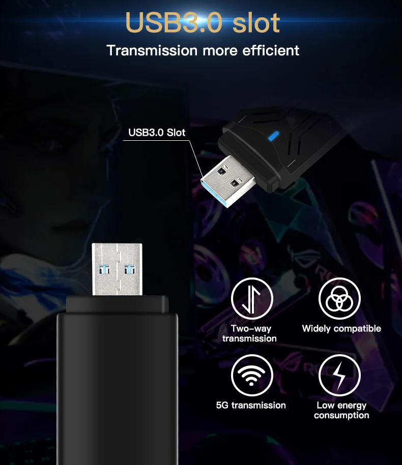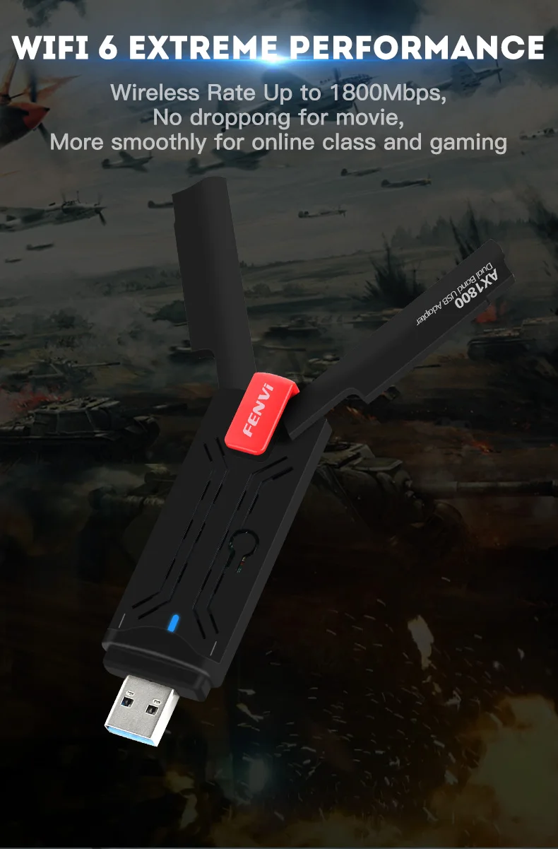 WiFi6 is fast, low in latency, large in capacity, safer, and more power efficient. Combined with Wifi6 USB network card, it is suitable for gaming, office, general home and other scenarios.