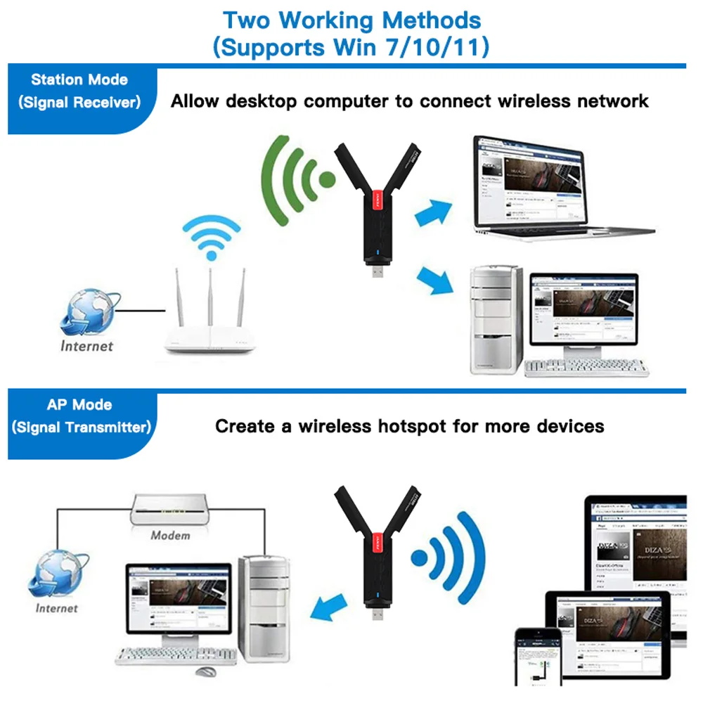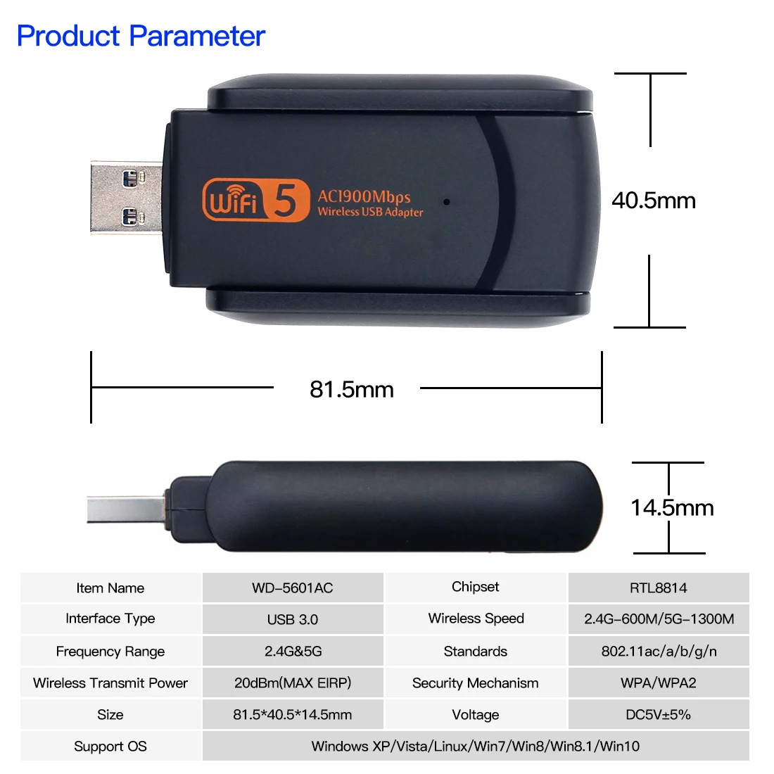 1200Mbps USB WiFi Adapter Network Lan Card Wireless External Receiver WiFi Dongle Wireless AC USB Adapter for PC Laptop Desktop