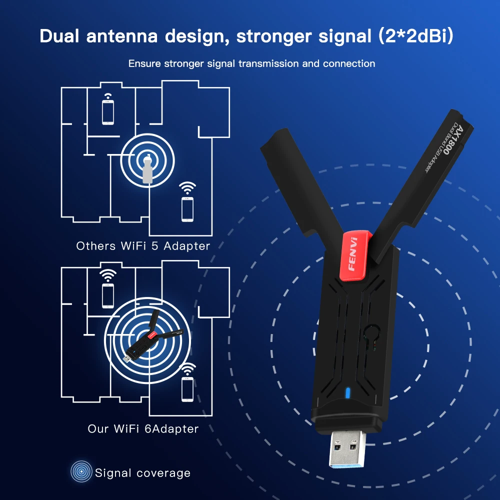 1800Mbps WiFi 6 USB 3.0 Adapter RTL8832AU 802.11ax Dual Band 2.4GHz/5GHz Support OFDMA WPA3 Wireless Network Card For PC/Laptop