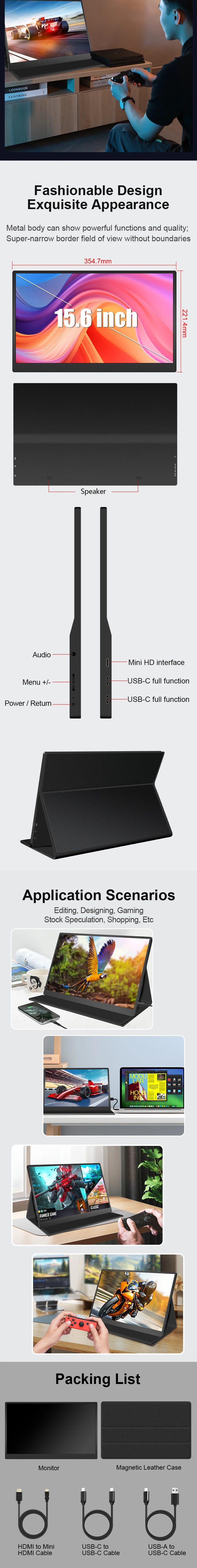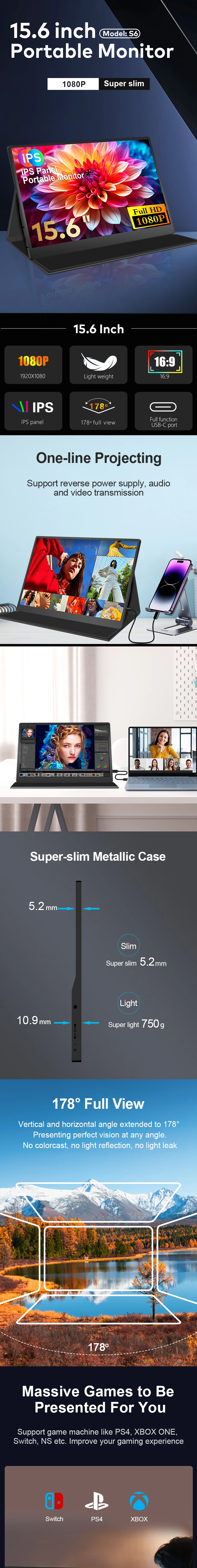 효율적인 온라인 60Hz IPS LCD USB C 및 노트북용 15 모니터 휴대용 6인치 HDMI