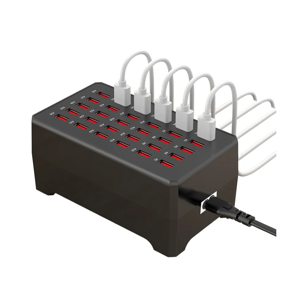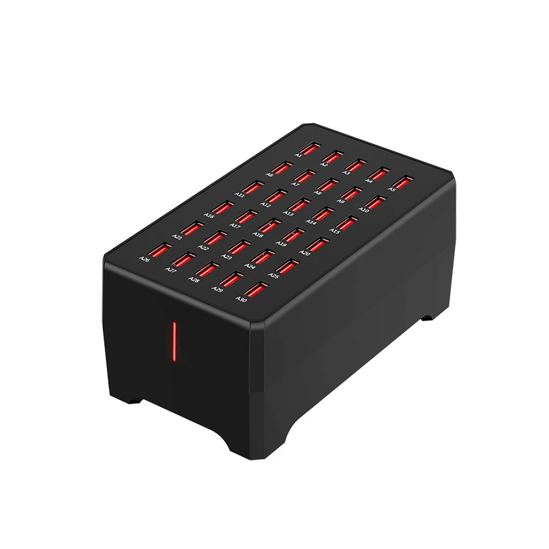 1. 30포트 USB 스마트 충전기는 여러 전자 장치를 동시에 충전할 수 있는 고급 솔루션입니다.총 출력 전력이 150W이므로 노트북, 스마트폰, 게임 콘솔, 카메라 등과 같이 전력을 많이 소모하는 장치에 이상적입니다.