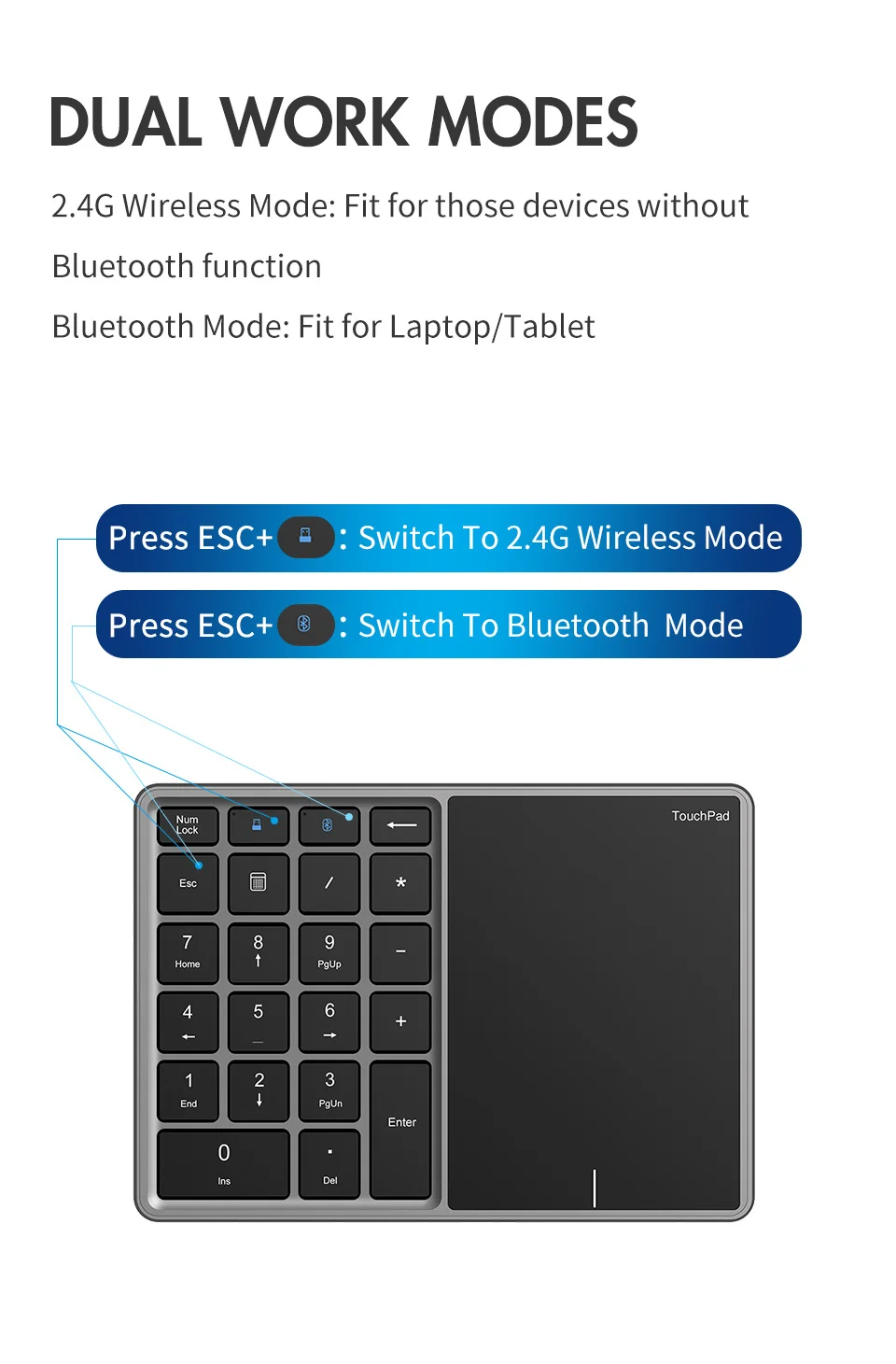 1.Bluetooth+2.4G 듀얼 모드, 하나의 키 스위치, 빠른 연결