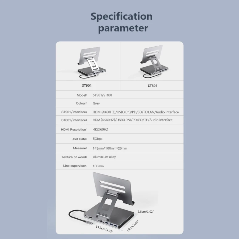 Type C 장치용 9 in 1 / 8 in 1 알루미늄 합금 도킹 스테이션으로 생산성을 높이세요.