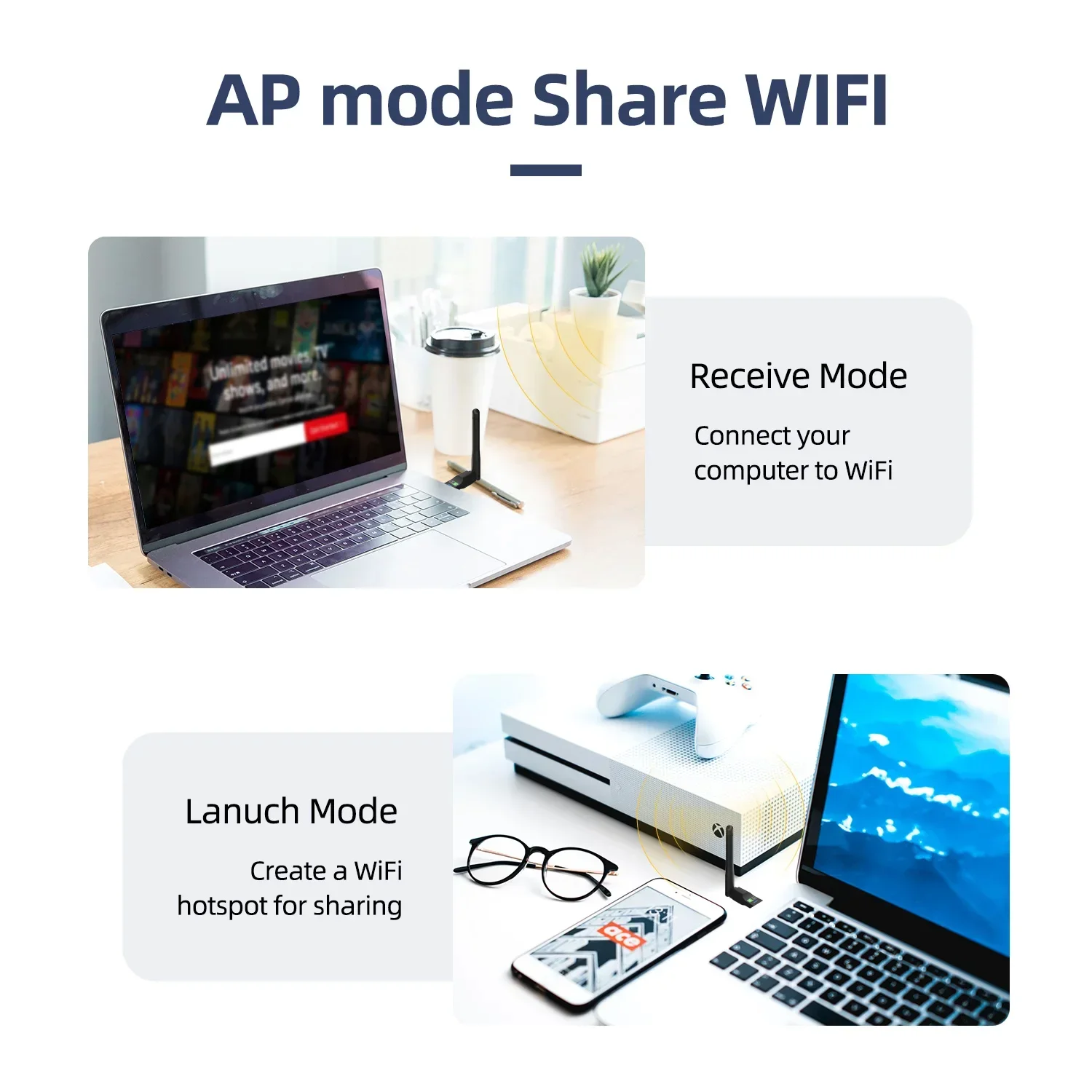 외부 안테나가 있는 MTK7601 WiFi 어댑터를 사용하면 집이나 사무실의 모든 WirelessN 네트워크에 노트북이나 데스크탑을 연결할 수 있습니다.