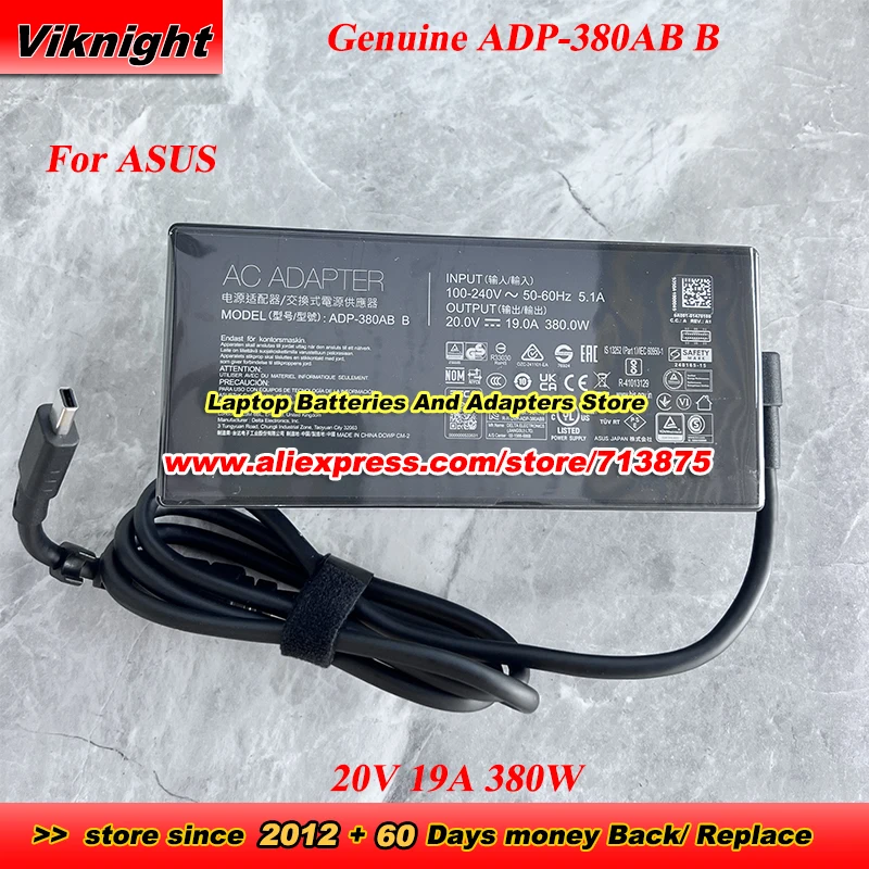 ASUS 직사각형 AC 어댑터용 정품 ADP380AB B 20V 19A 380W AC 어댑터 1개