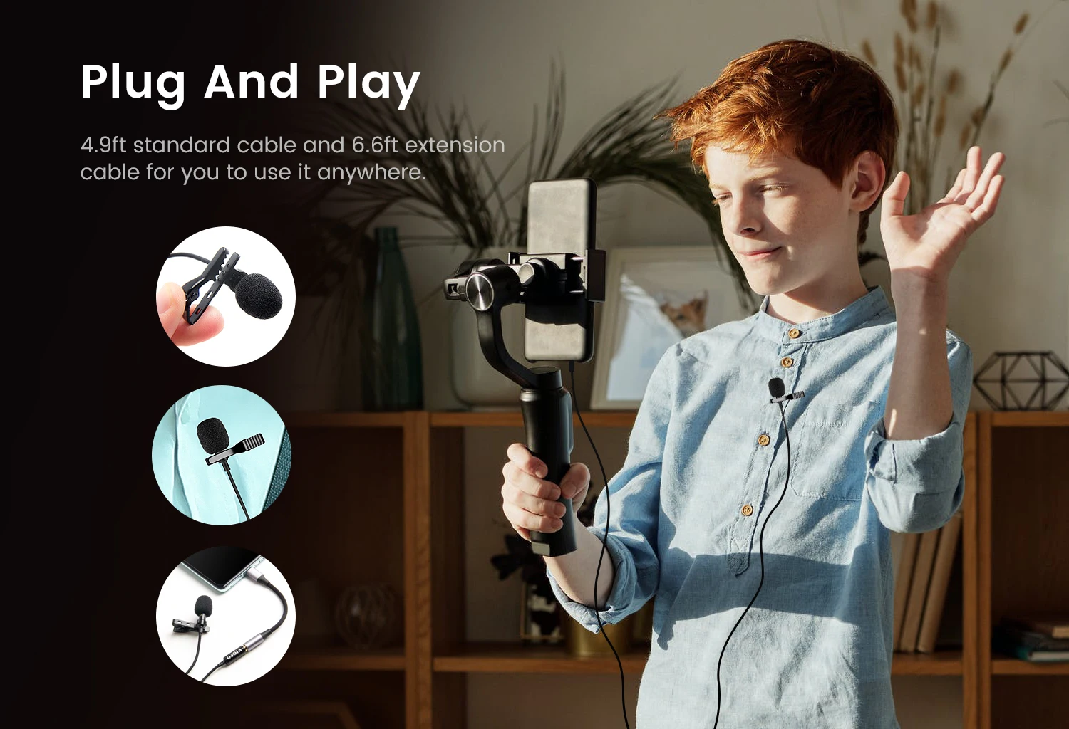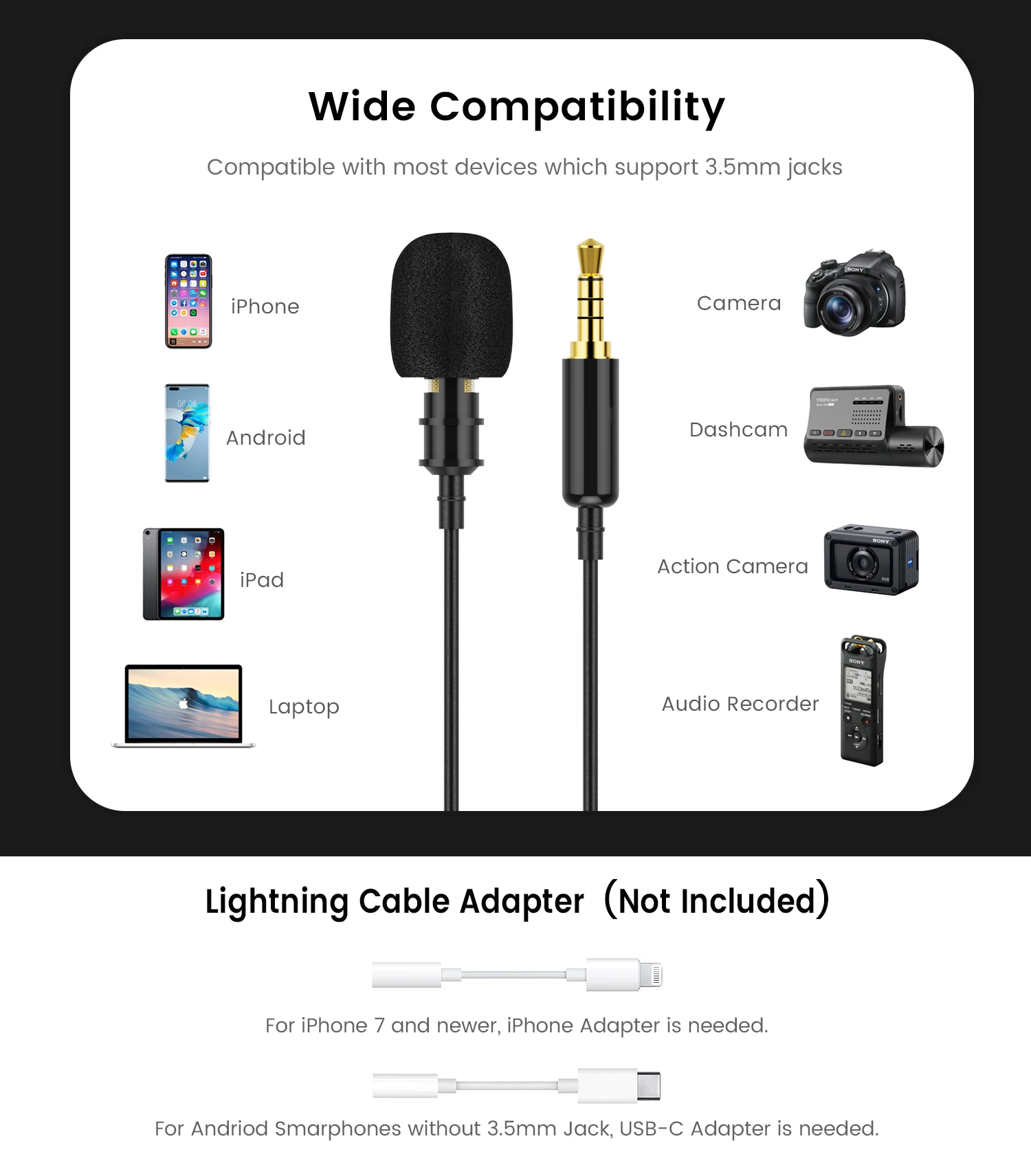 3.5mm 잭이있는 전문 lavalier 마이크.
