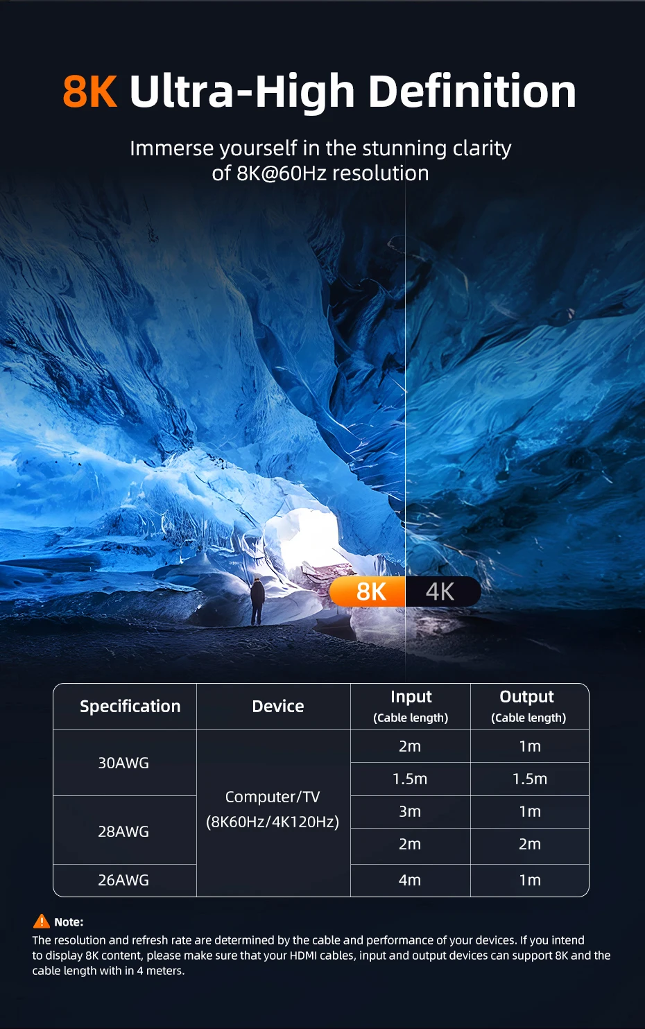 | Resoltion | 8K/60Hz 4K/60Hz |