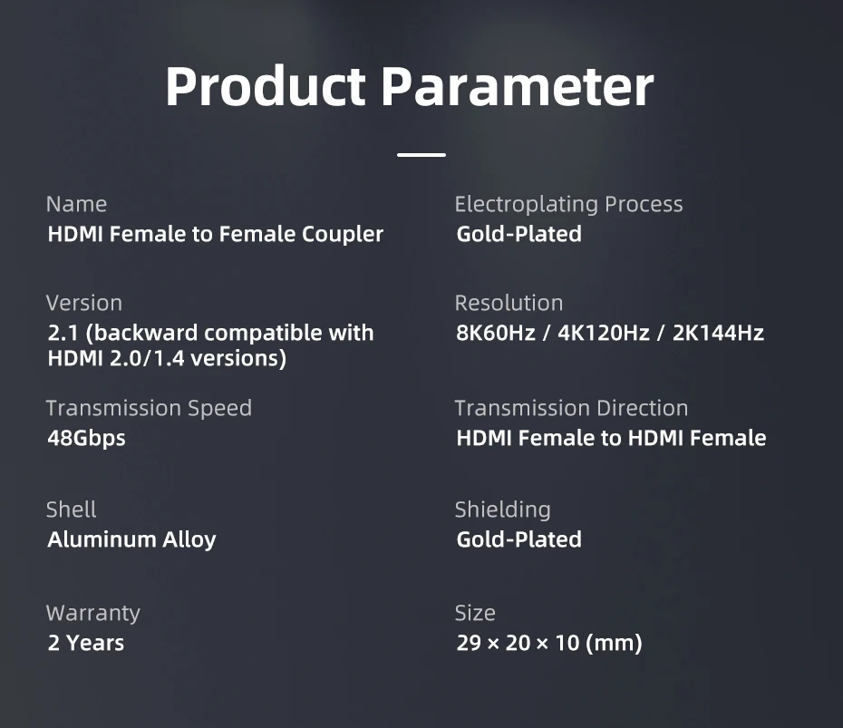 | Name | 8K HDMI Coupler, HDMI Connector |