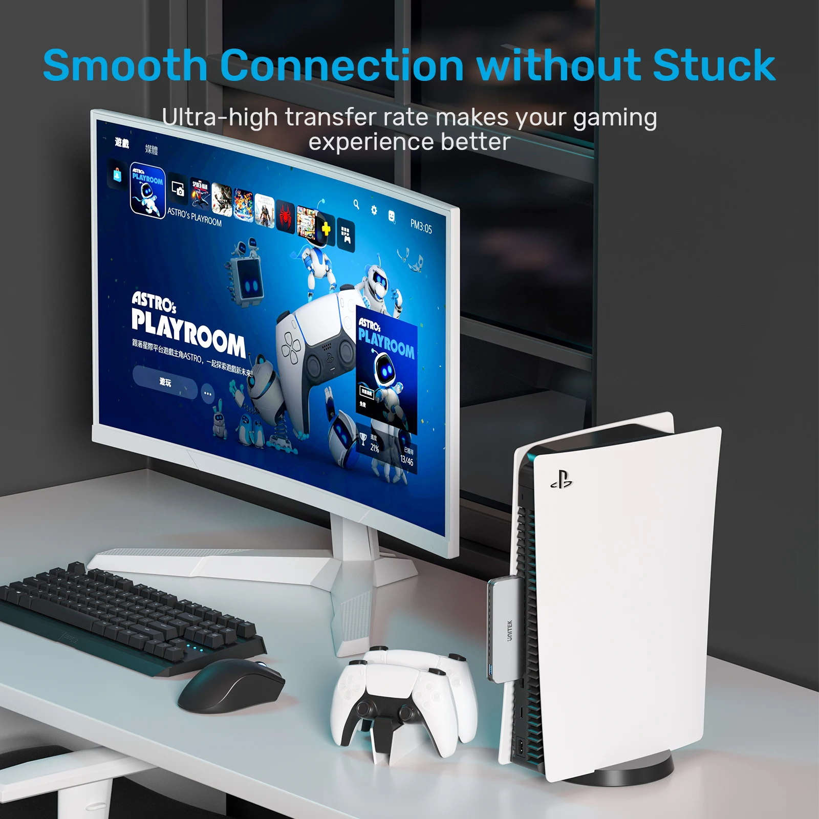 이 10Gbps 알루미늄 인클로저는 PS5용 외부 M.2 SSD 스토리지를 지원하며, 이를 사용하여 PS5에서 게임을 실행하기 위해 게임을 다운로드하고 복사할 수 있습니다.콘솔 장착형 디자인은 견고한 연결을 제공합니다.