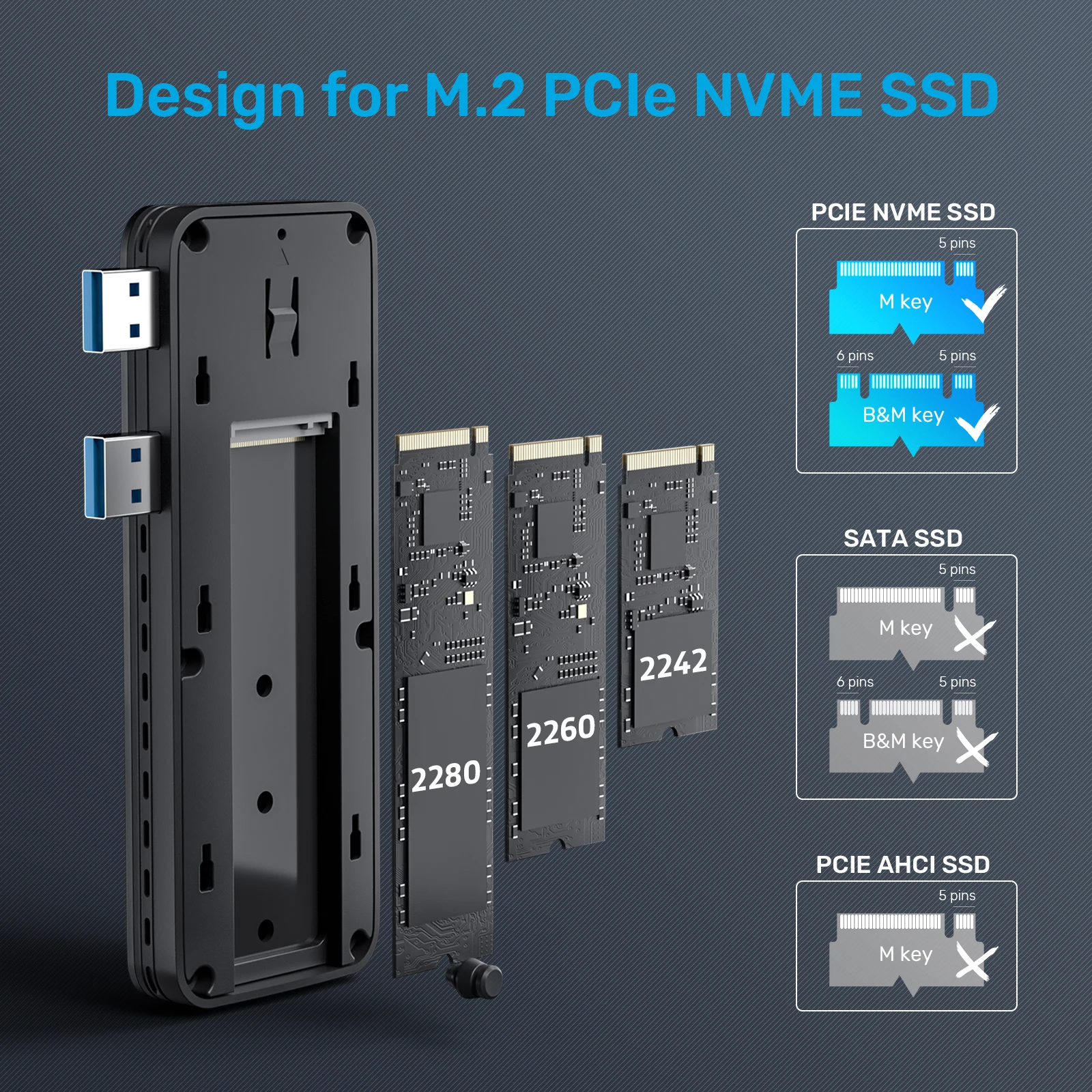 ? 다양한 크기의 PCIe/NVMe M.2 SSD 사양(42mm/60mm/80mm, M 키 및 M+B 키)을 지원합니다.