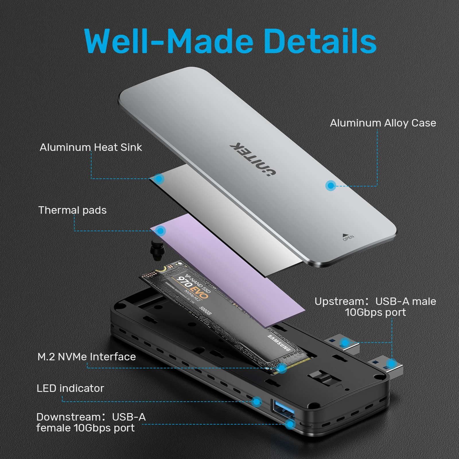 PS5용 UNITEK PCIe/NVMe M.2 SSD 10Gbps 인클로저