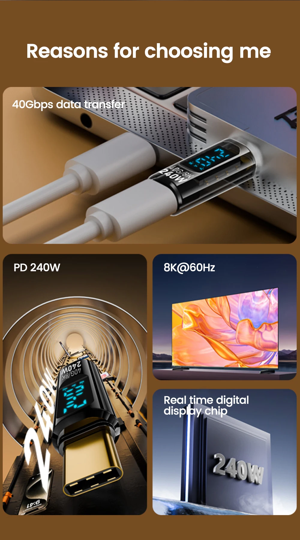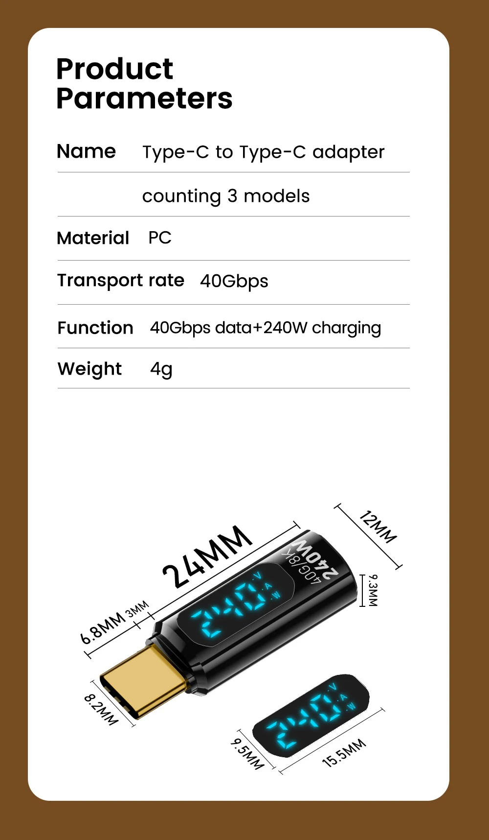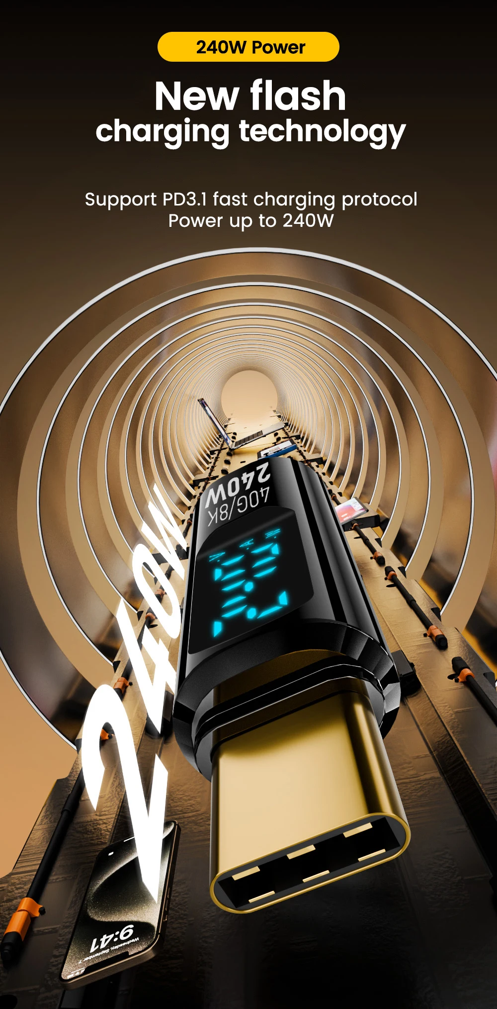 디지털 디스플레이가 포함된 USB4 240W 어댑터 ? 40Gbps 데이터 및 8K 비디오 전송