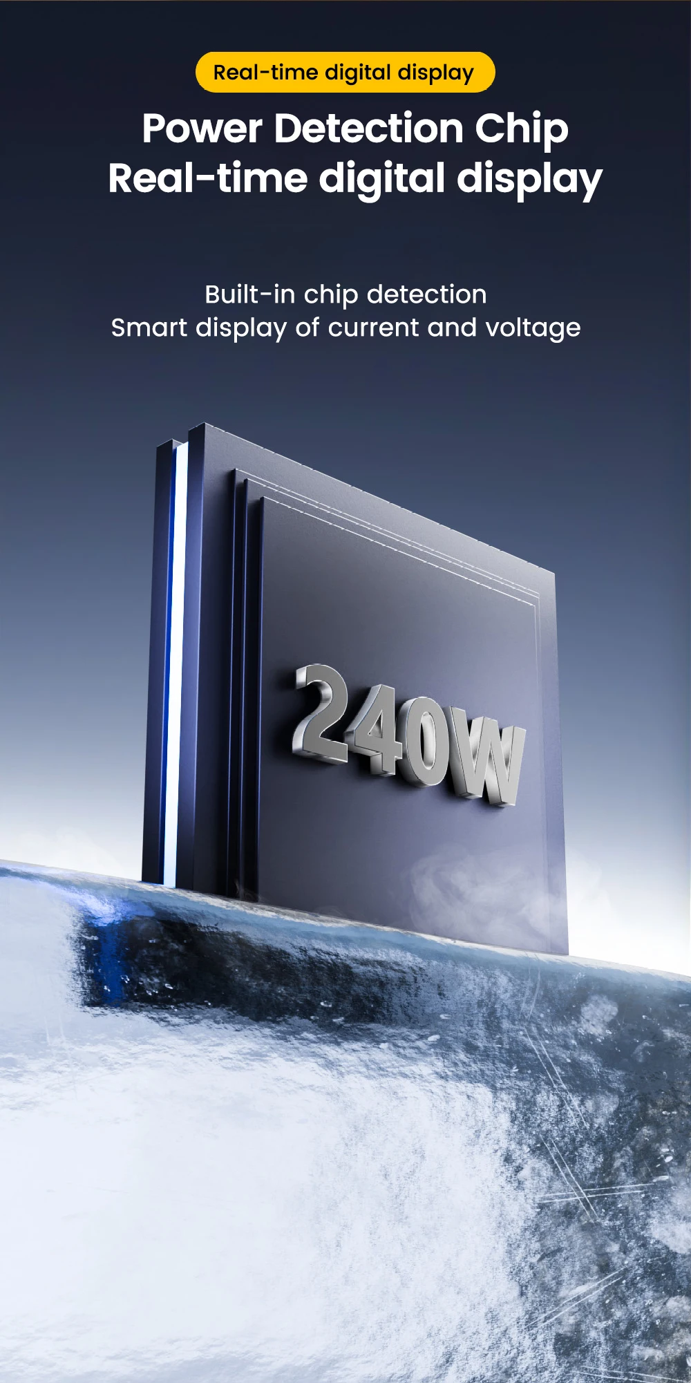 내장된 OLED 화면으로 실시간 전압, 전류, 전력 통계를 모니터링하여 노트북, 휴대폰 또는 게임 콘솔의 충전 안전과 효율성을 최적화합니다.