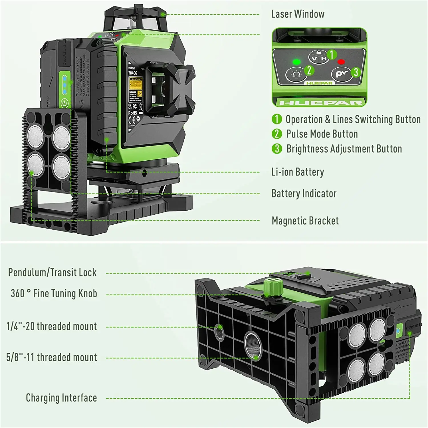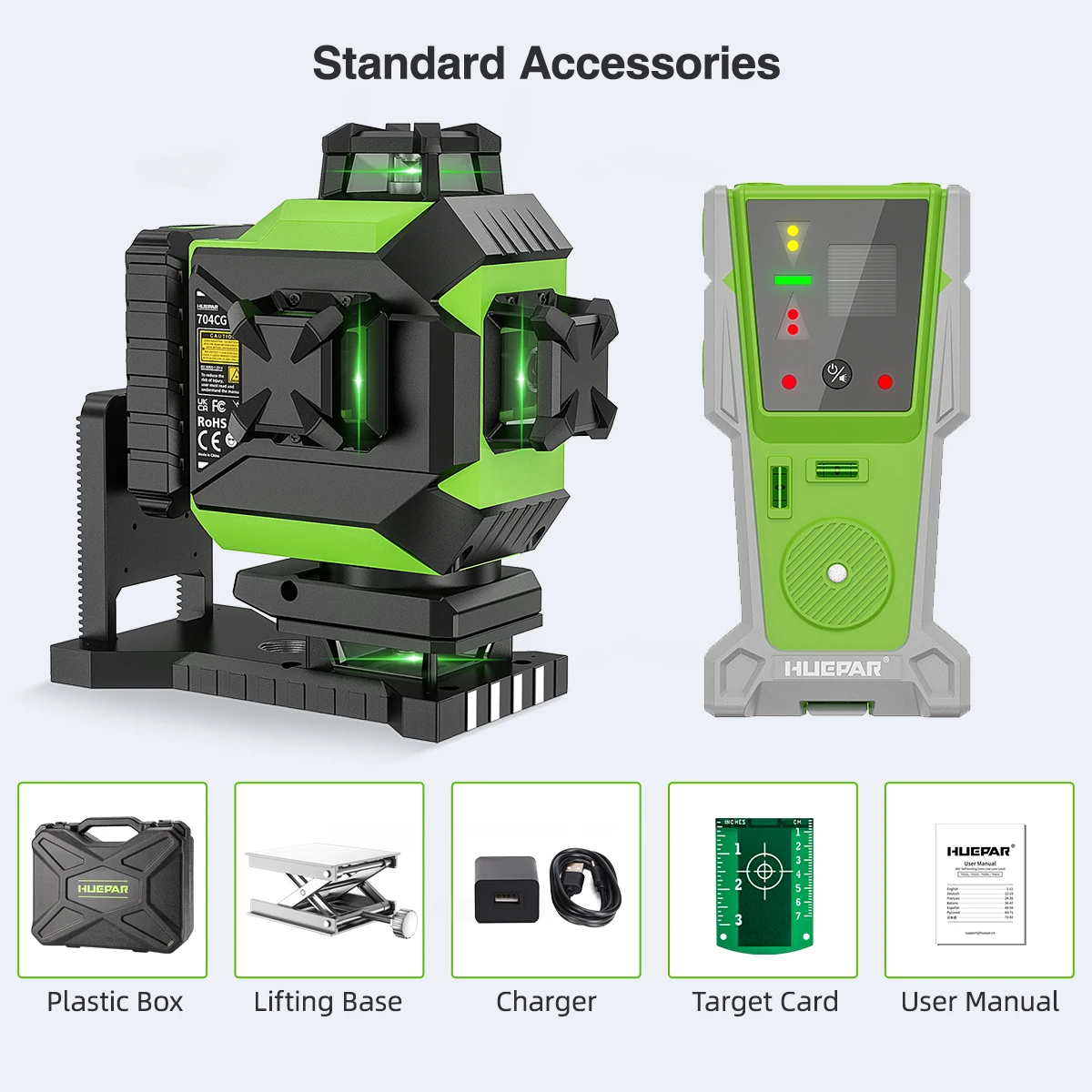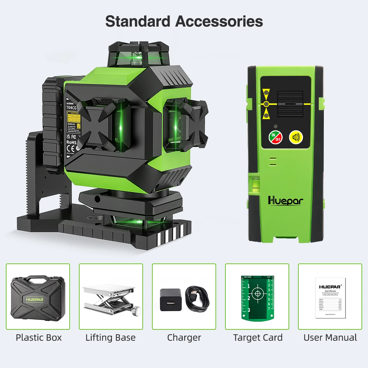 Huepar LR6RG / LR5RG /LR8RGLine 레이저 수신기와 호환됩니다 (별도 구매 필요).