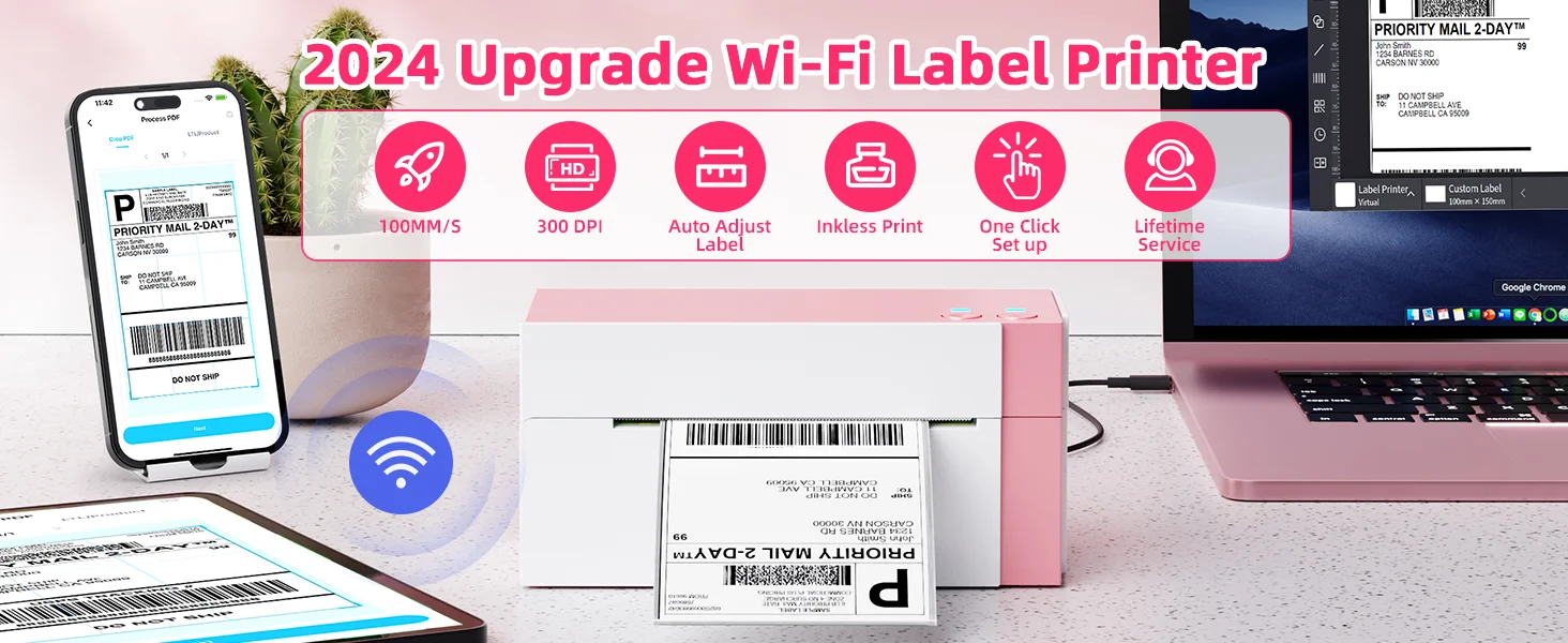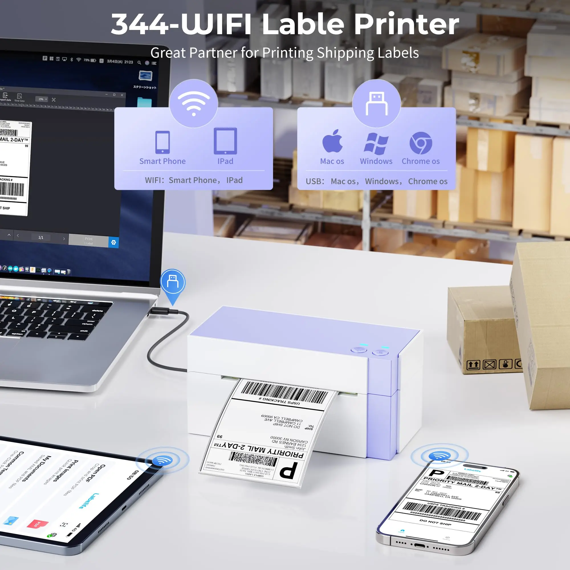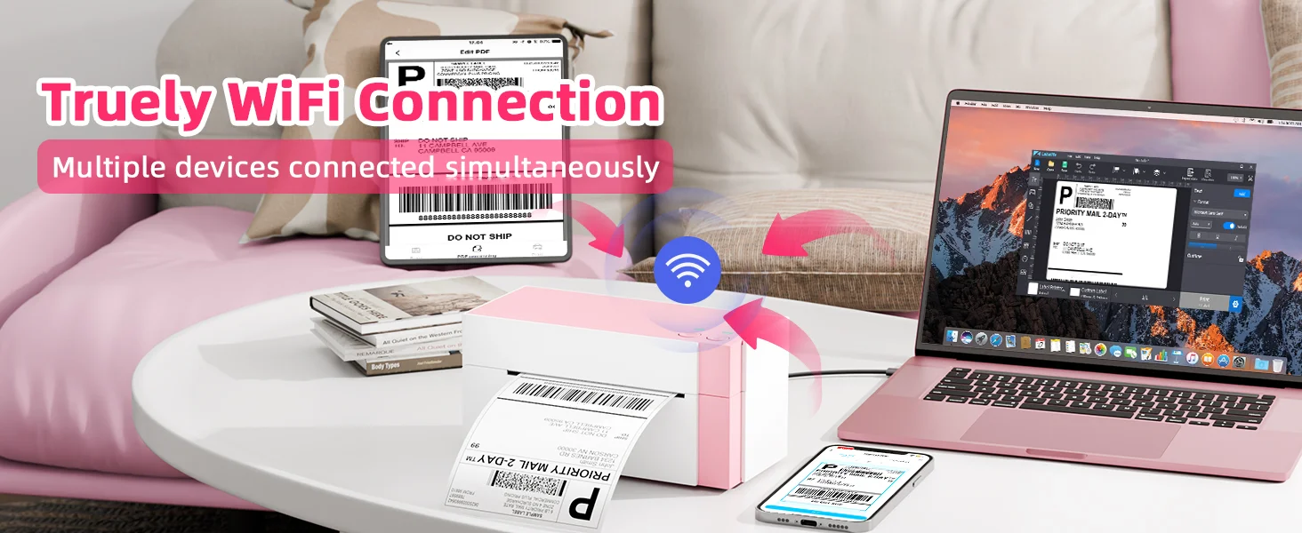 [2024 업그레이드 된 WiFi 라벨 프린터]-얼마나 멋진! 이 배송 라벨 프린터는 사실적이고 안정적인 WiFi 연결을 제공하며이 열 라벨 프린터는 Android/IOS 및 Mac/Win/Linux와 같은 주류 시스템과 완벽하게 호환됩니다. 이 감열 라벨 프린터로 인쇄 할 때 케이블을 제거하고 진정한 무선 연결의 편리함을 즐기십시오. 또한 USB 연결을 선호하는 경우이 무선 라벨 프린터는 Google을 포함한 모든 컴퓨터 시스템에 대한 USB 연결을 지원합니다.
