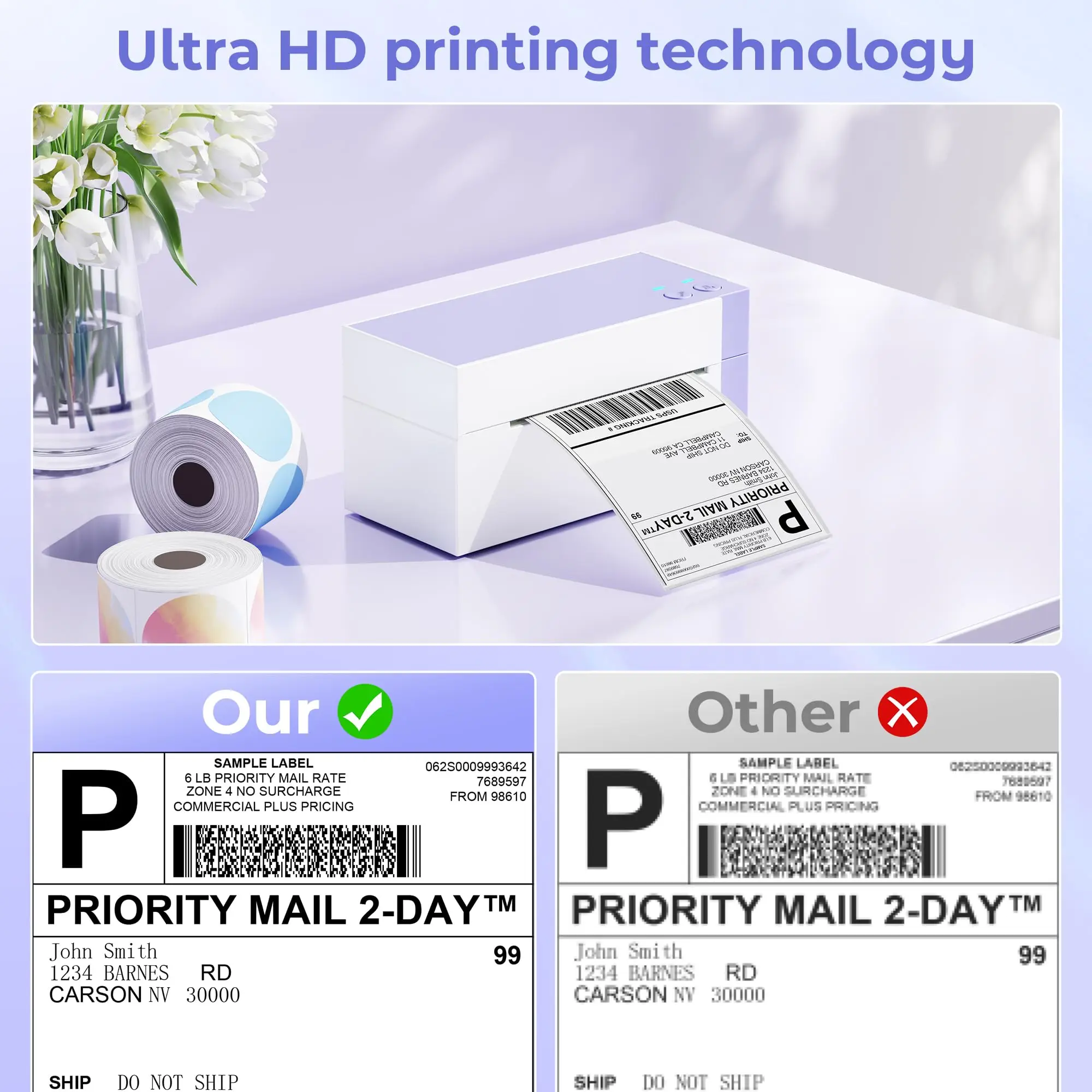 [HD Printing & High Speed] -이 열 배송 라벨 프린터의 고해상도 300 DPI 프린트 헤드 덕분에 인쇄 된 라벨은 더 선명하고 읽기 쉽고 스캔하기 쉽습니다! 또한 업그레이드된 열전사 인쇄 기술로 배송 라벨 프린터 wifi가 100mm/s의 속도로 인쇄할 수 있습니다. 분당 4 "X 6" 레이블의 평균 72 매 인쇄. 의심 할 여지없이 중소기업을위한 라벨 프린터는 많은 작업 시간을 절약 할 수 있으며보다 효율적이고 편안하게 작업 할 수 있도록 도와줍니다.