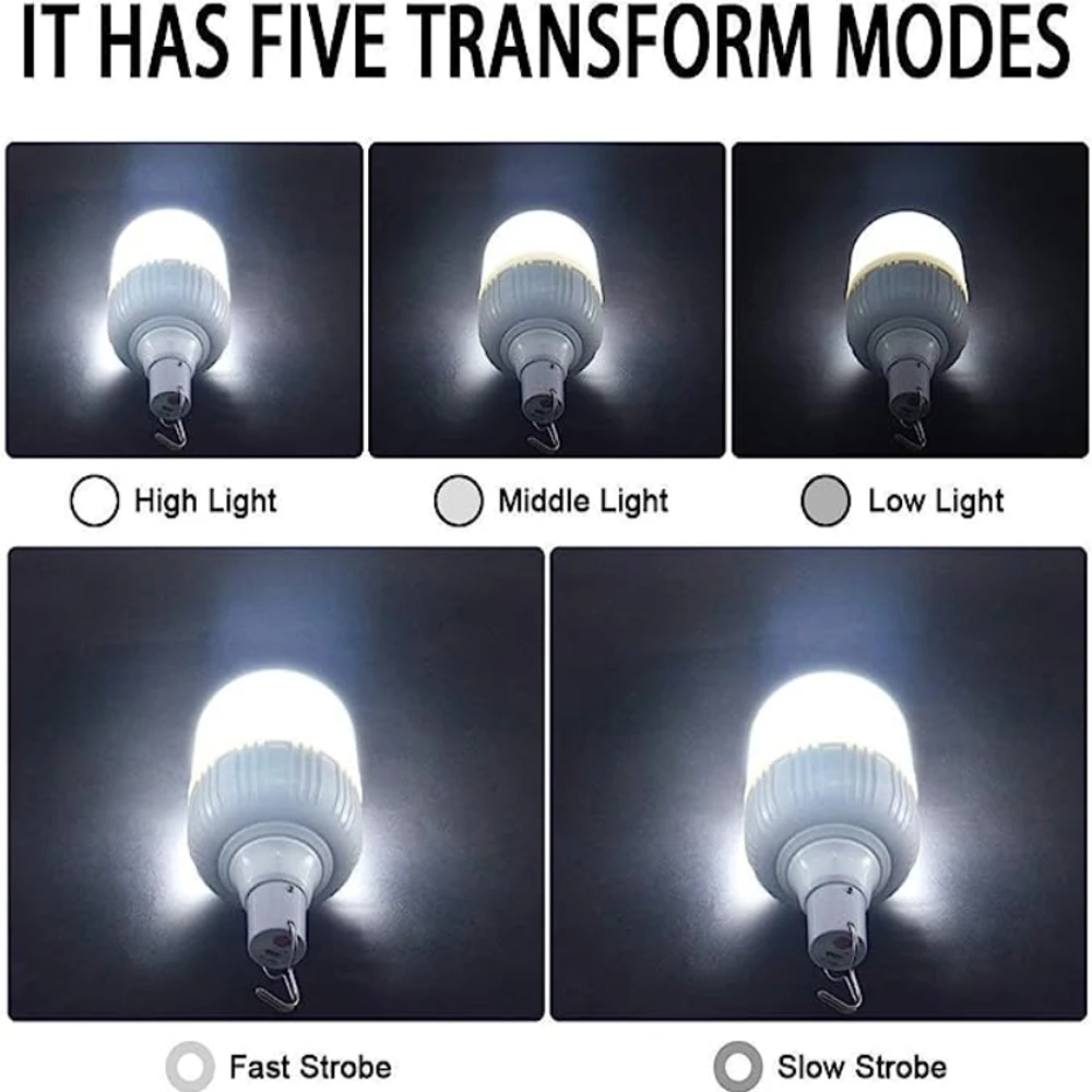 3. 3 Modes . This premium dimmable LED bulb will adjust its brightness according to your specific needsthrough 5 different lighting modes! Choose from high light, low light, flashing, then turn off to suit yourneeds, whatever you want.