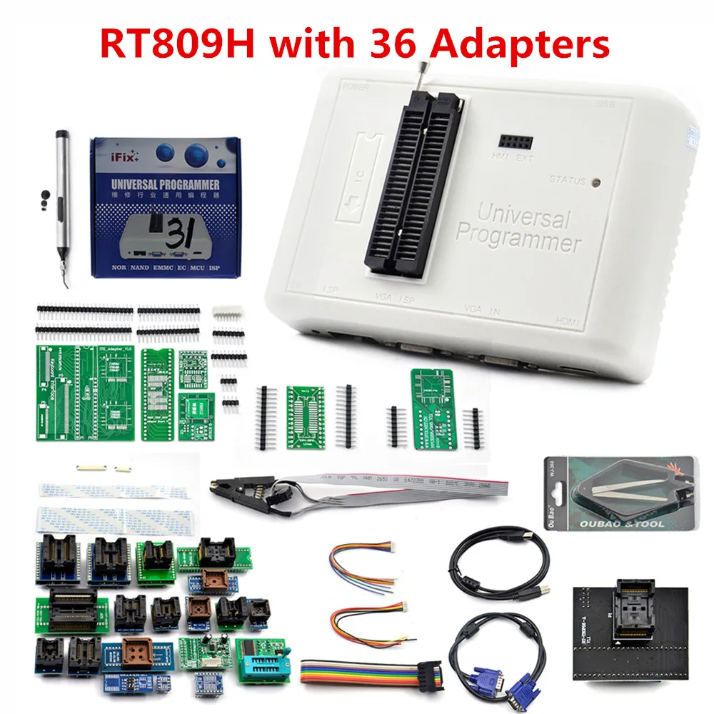 100% Original RT809H Universal Programmer EMMCNand FLASH Programmer with 36 Adapters Full Adapters Free Shipping