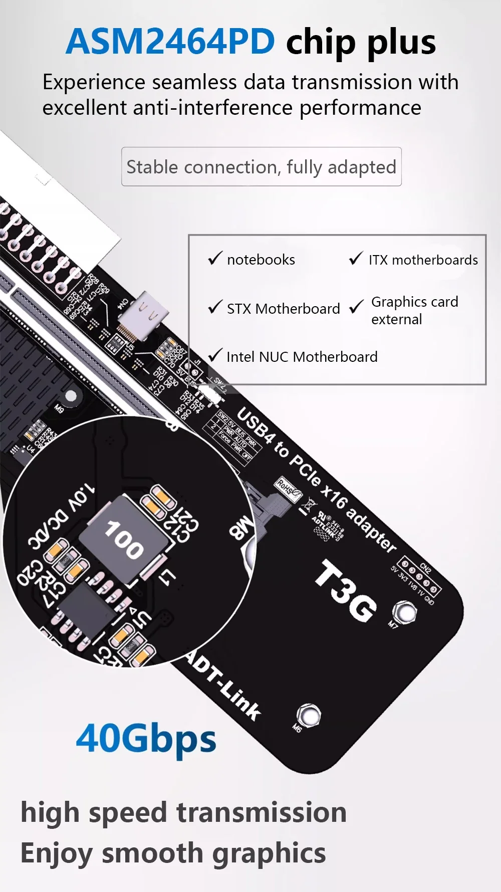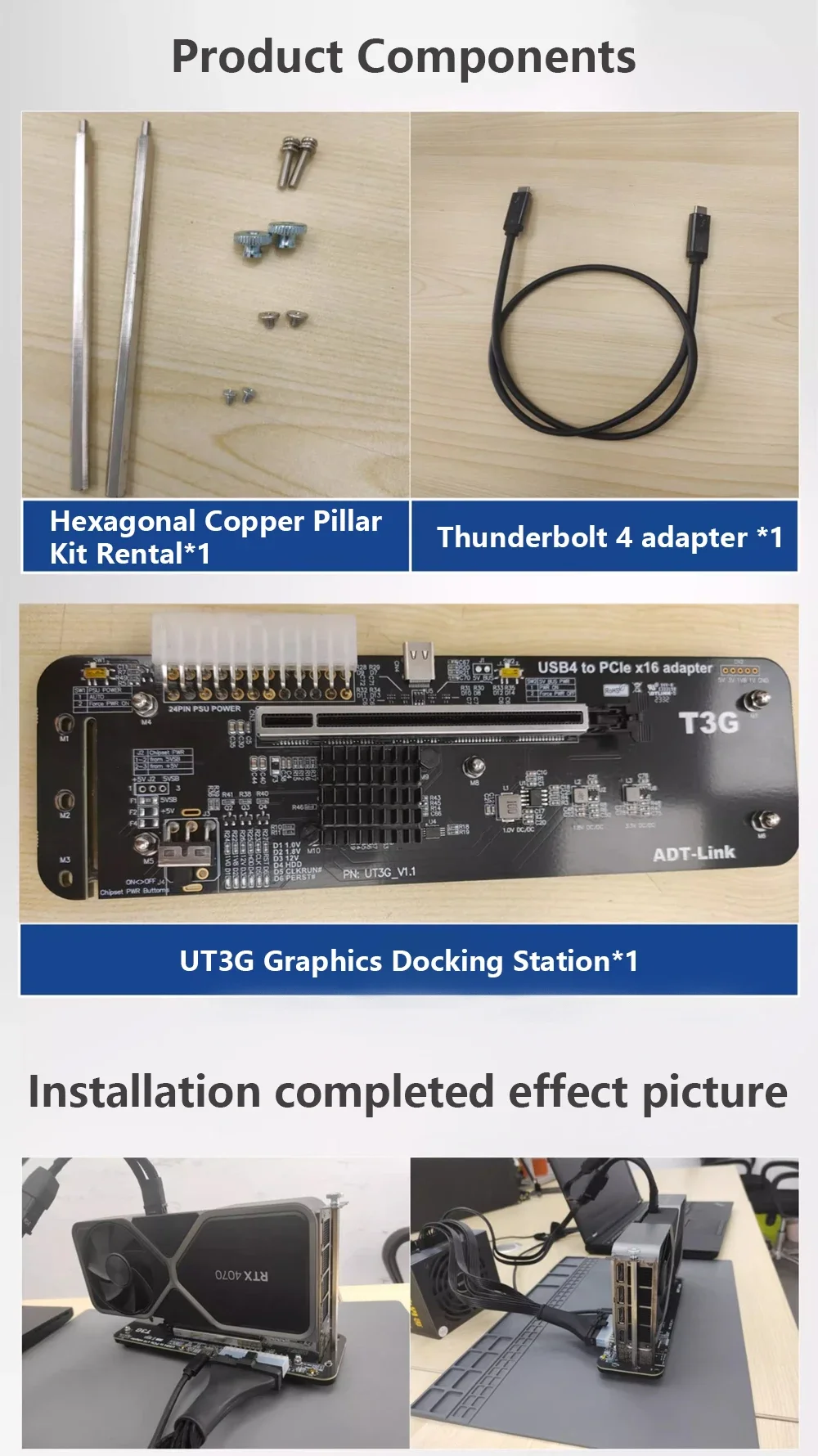 ADTLink UT3G 노트북 외부 카드 USB4PCIe 4.0 x16 eGPU 어댑터, Thunderbolt 3/4 NUC ITX STX 노트북 PC 게임용