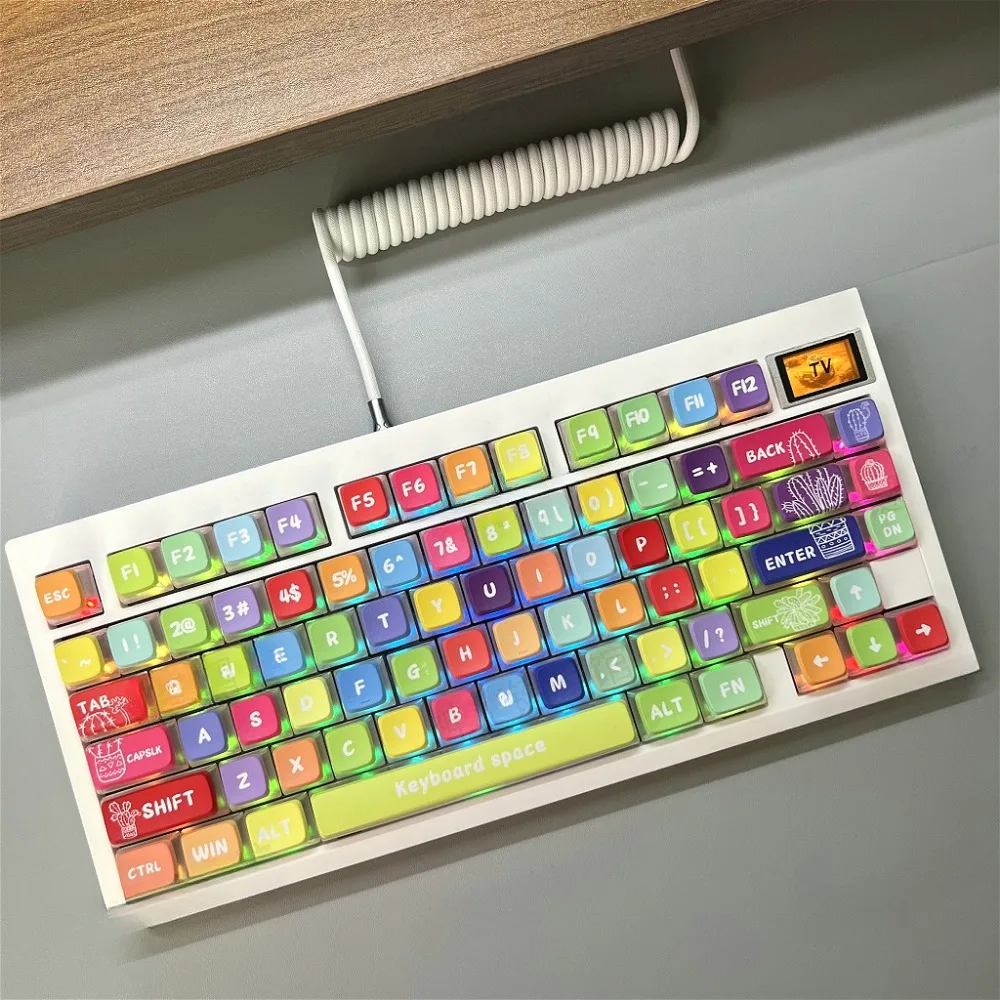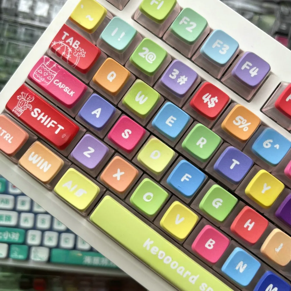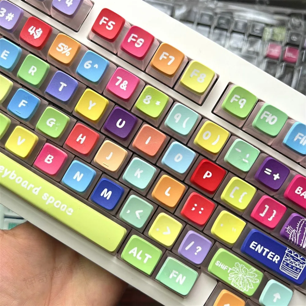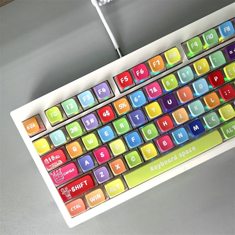 Dopamine Skittles PBT Transparent Keycap, Thermal Sublimation Side Transparent, Adapted to Wooting60 ATK68 Rainy75 Night Demon
