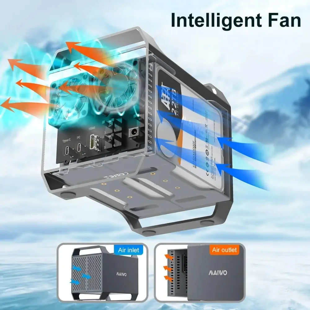 【팬을 이용한 빠른 방열】3.방열이 좋은 5인치 SATA 인클로저는 방열이 잘 되는 알루미늄 합금으로 제작되었을 뿐만 아니라 2개의 지능형 팬이 장착되어 있어 하드 드라이브의 온도가 최대 48도일 때 팬이 자동으로 켜집니다.℃, 온도가 48도보다 낮으면 꺼집니다.℃, 하드 드라이브를 보호할 수 있을 뿐만 아니라 에너지를 절약하고 지능적이며 환경 친화적일 수 있습니다.