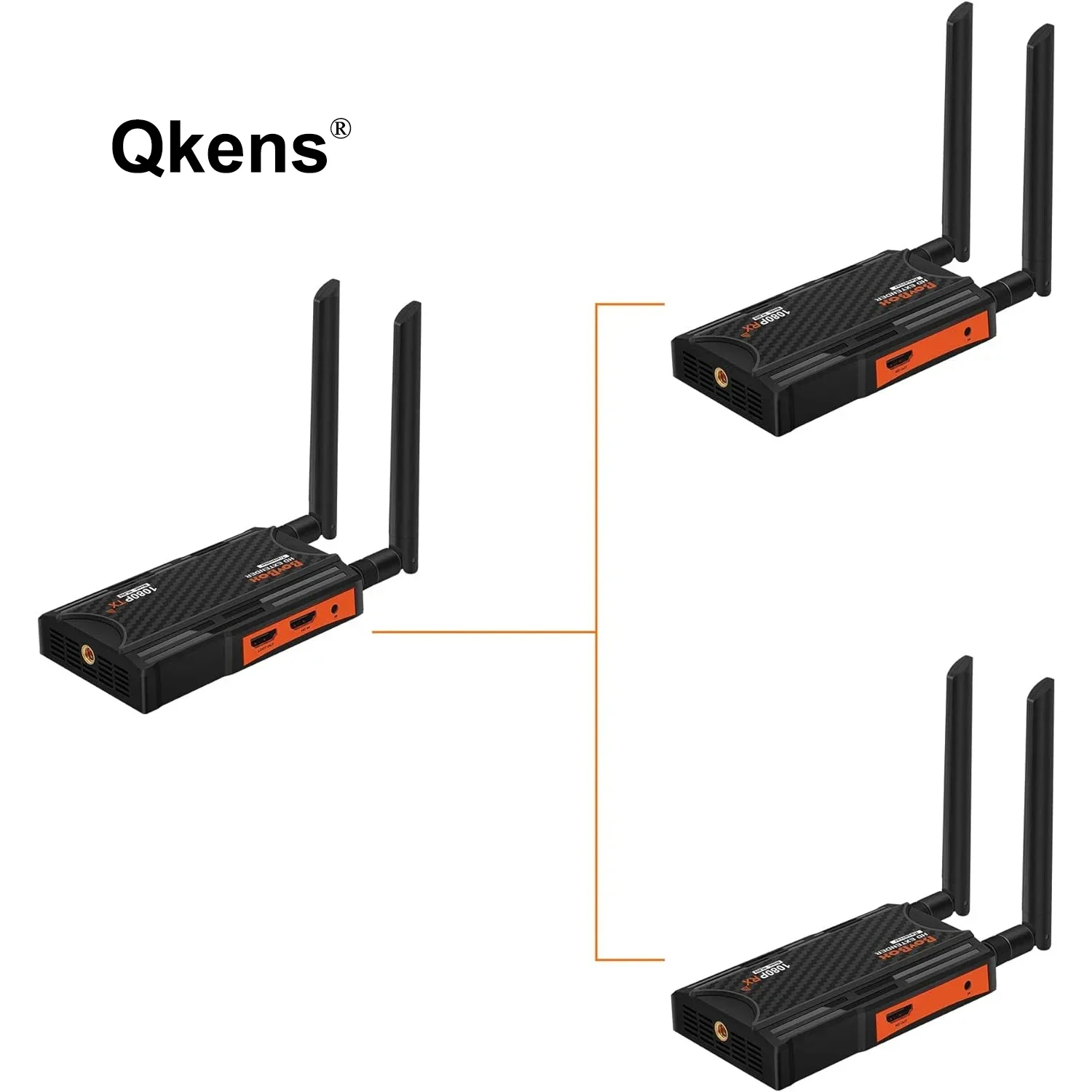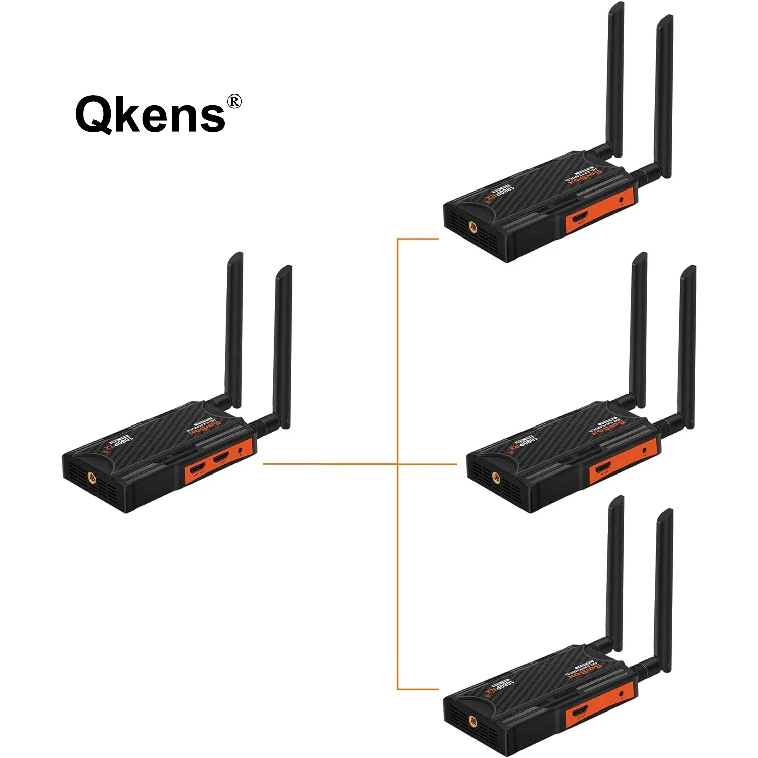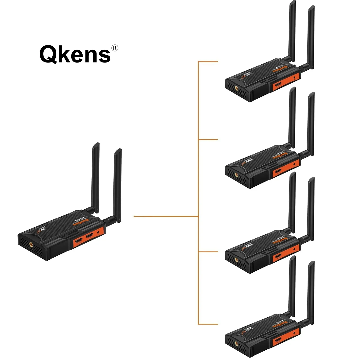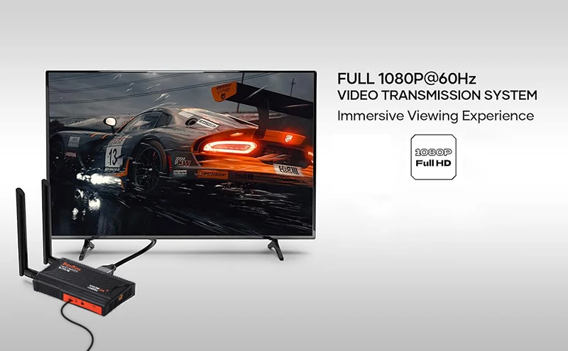 이 무선 확장기는 내장된 무선 전송을 통해 HD 오디오 비디오 신호를 전송합니다.