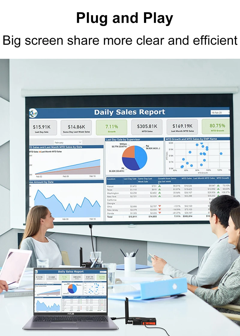 풀 HD 1080P 디스플레이를 지원합니다.드라이버나 앱을 설치할 필요가 없으며, 잘 페어링된 후 플러그 앤 플레이만 하면 됩니다.