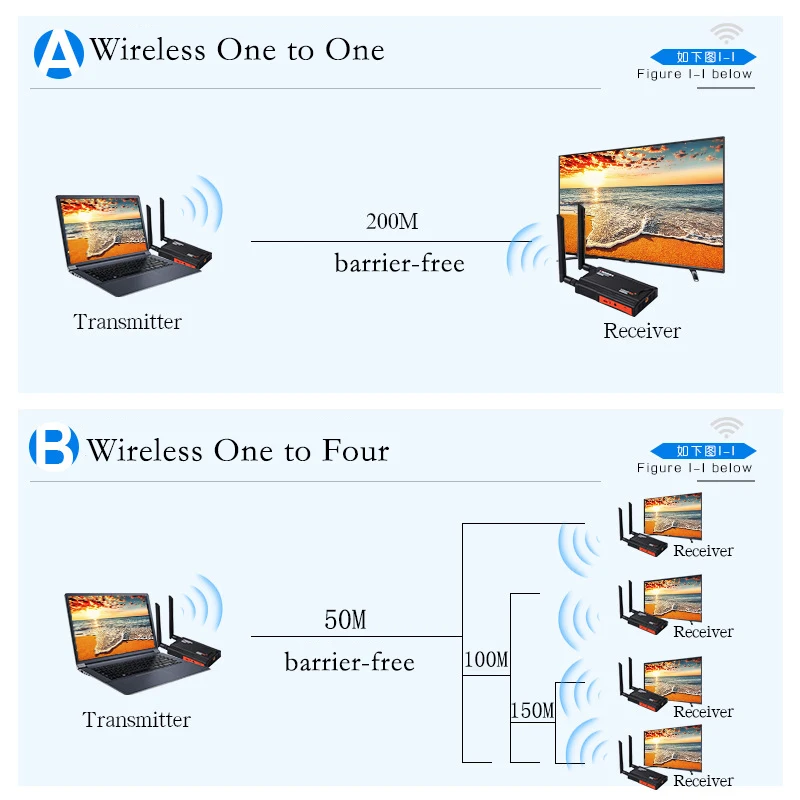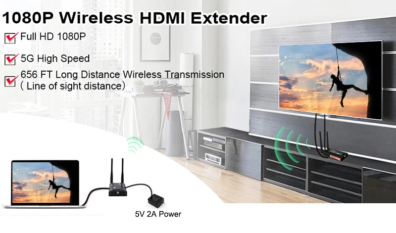 이 무선 확장기는 내장된 무선 전송 프로토콜을 통해 HD 오디오 비디오 신호를 전송합니다.