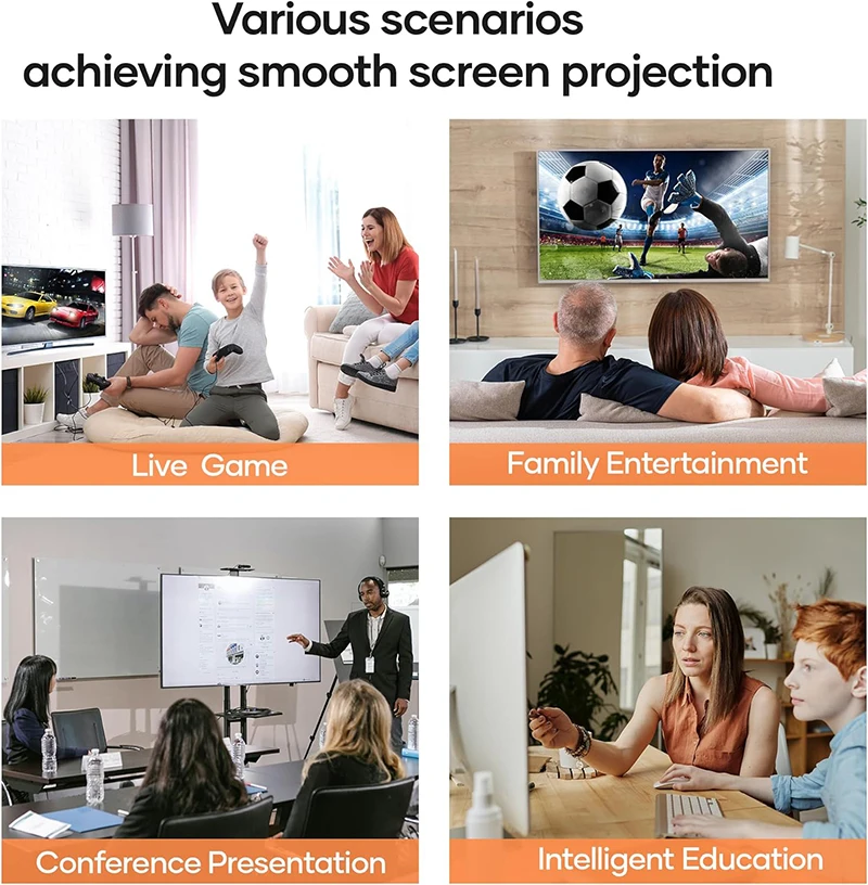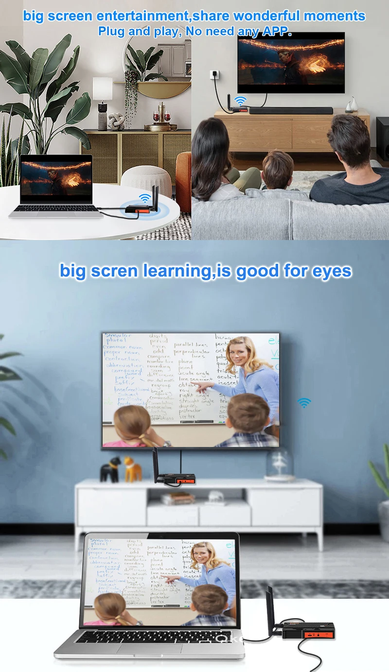 Full HD 1080P 무선 전송을 지원합니다.드라이버나 앱을 설치할 필요도 없고, 추가 WiFi도 필요하지 않습니다.