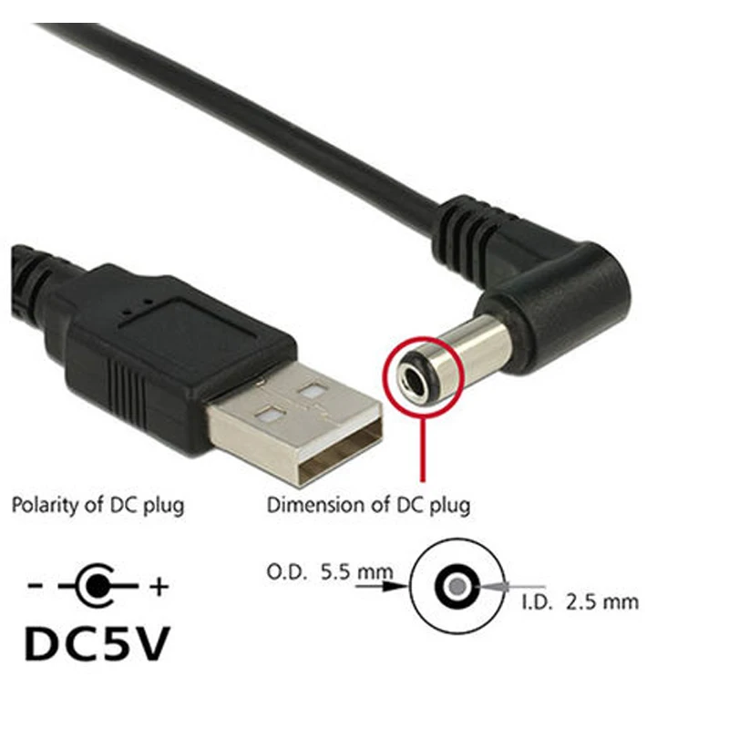 | Style | USB A male to 5.5*2.5mm dc cable |