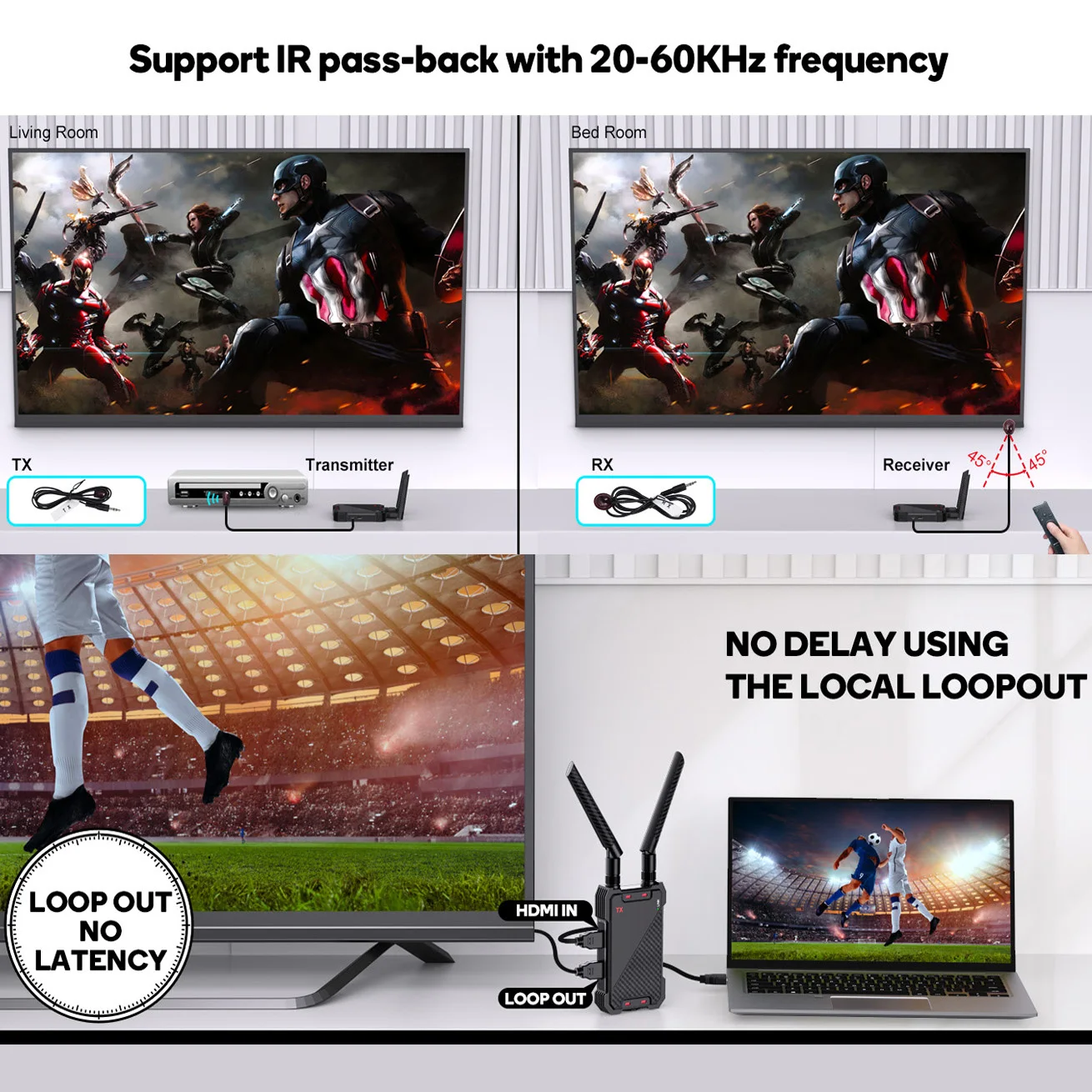 -1개의 송신기에서 4개의 수신기를 지원합니다.TX는 HDMI 로컬 루프아웃을 지원하므로 RX는