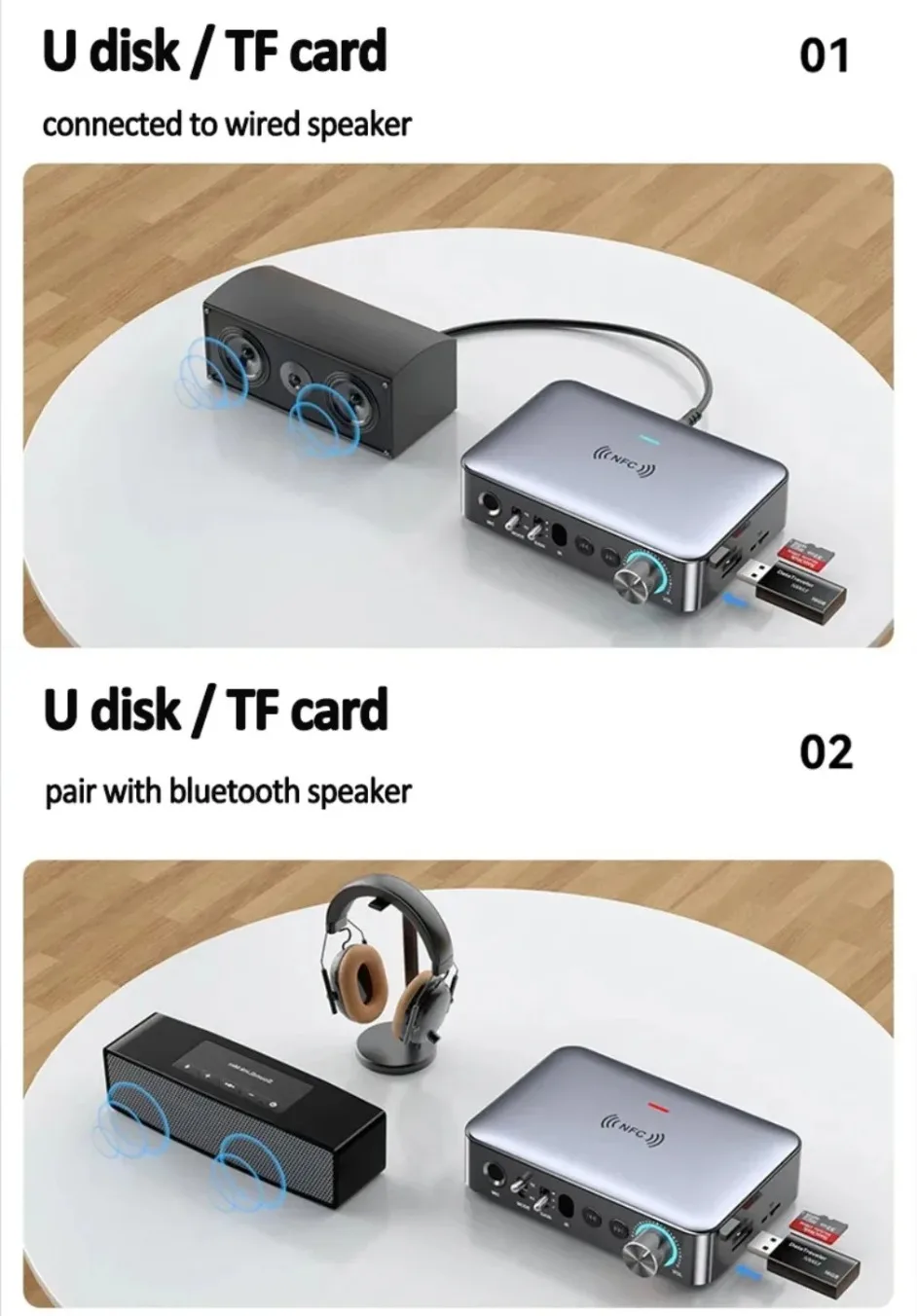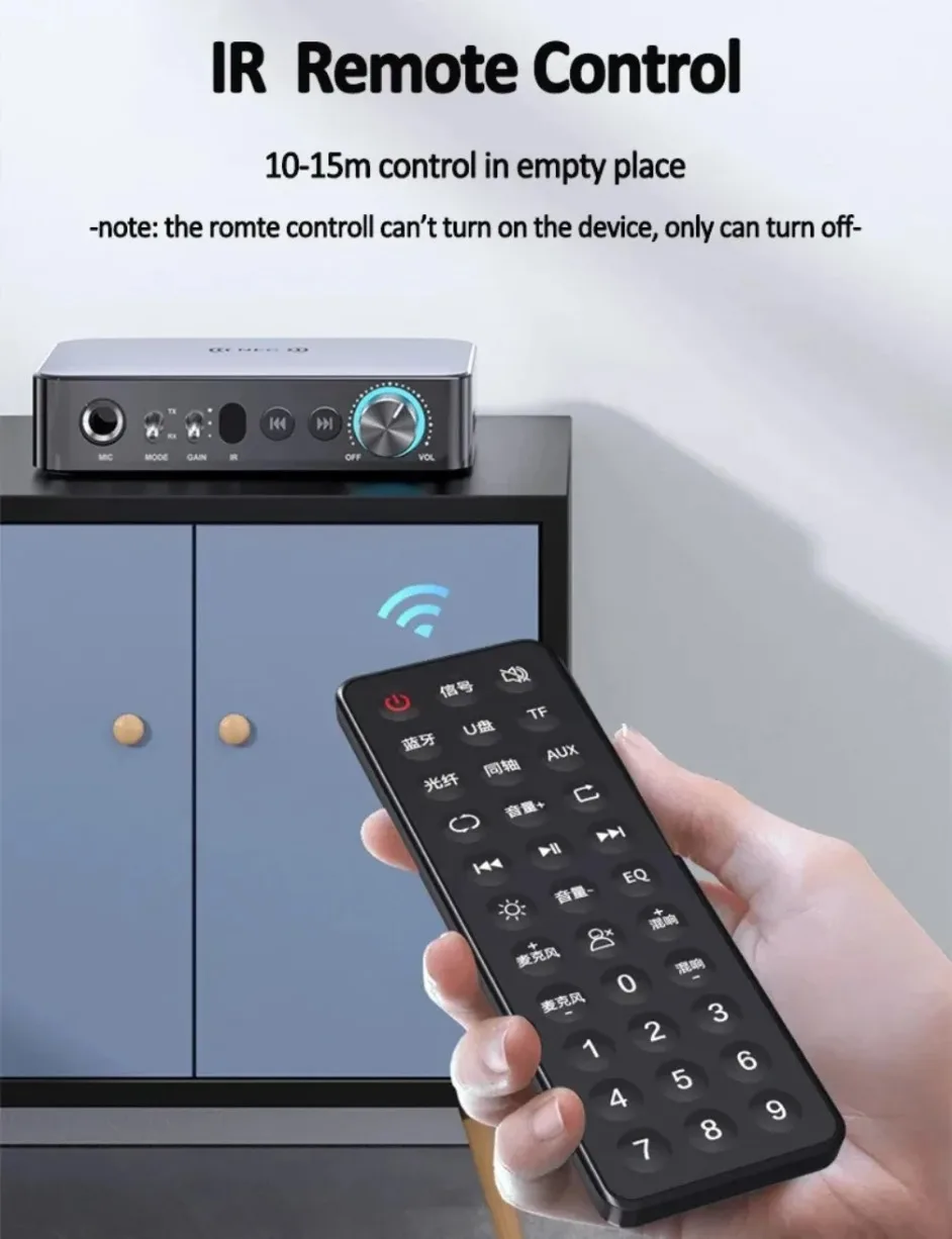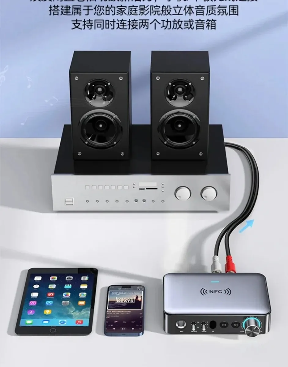 기본 기능: 블루투스 수신기, 블루투스 송신기, U 디스크 재생, TF 카드 재생, 적외선 원격 제어, NFC 터치, 마이크 노래,DSP,NFC