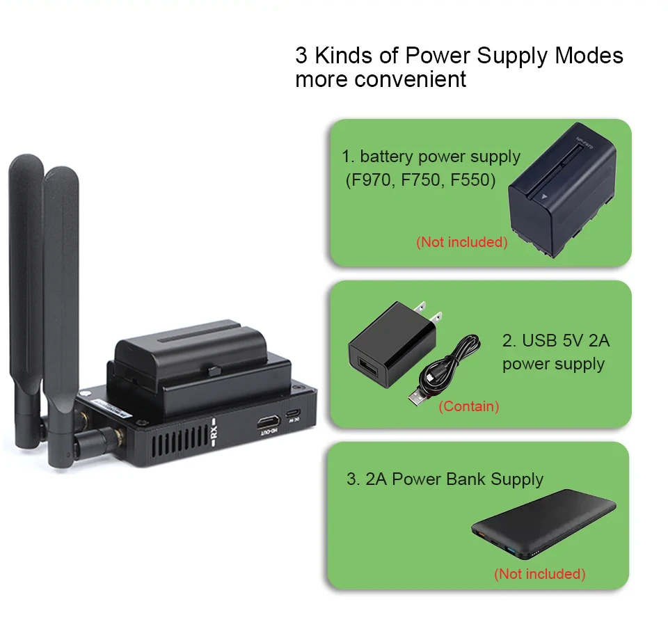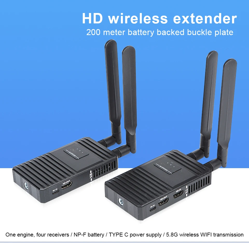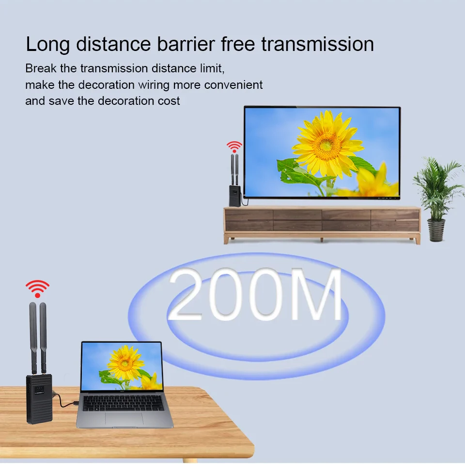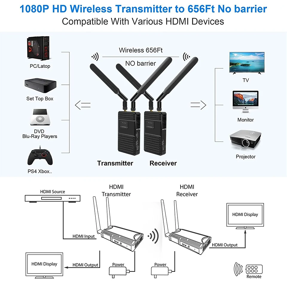 1. 송신기 HDMI 호환 비디오 및 오디오 신호는 최대 5.8G 무선을 통해 최대 200m(656ft)까지 전송됩니다.