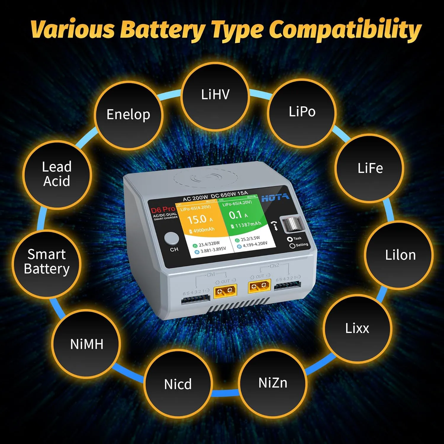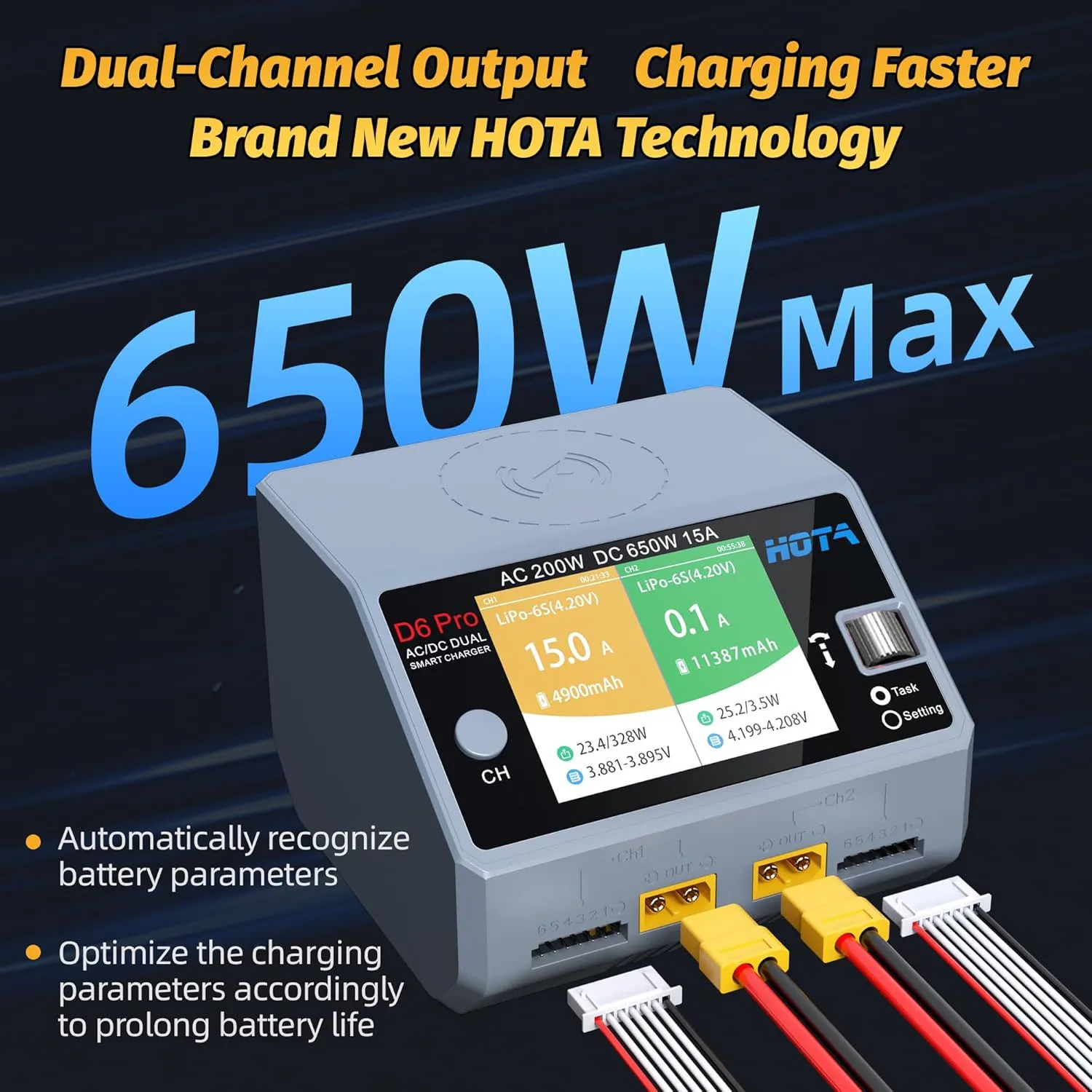 HOTA D6 Pro AC 200W DC 650W 15A / D6 DC 2X325W 2X15A NiZn Nicd NiMH 배터리 RC 모델 예비 부품 Accs 용 배터리 충전기