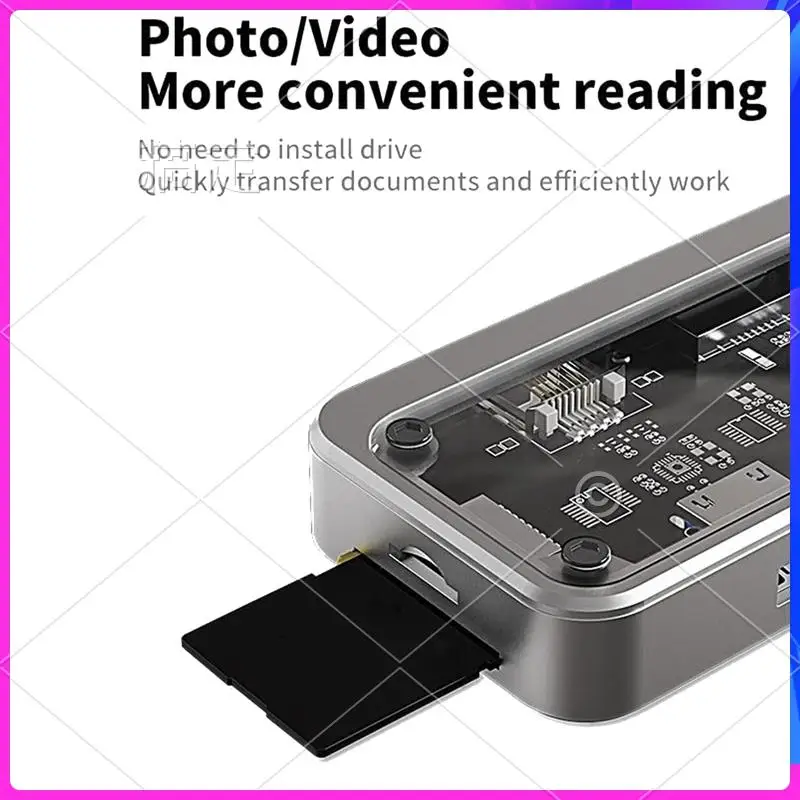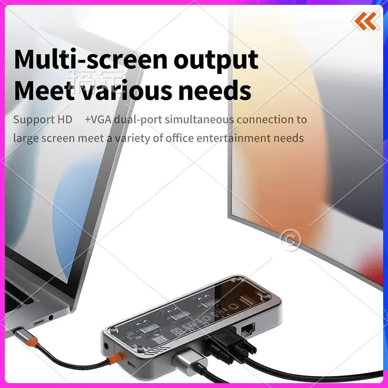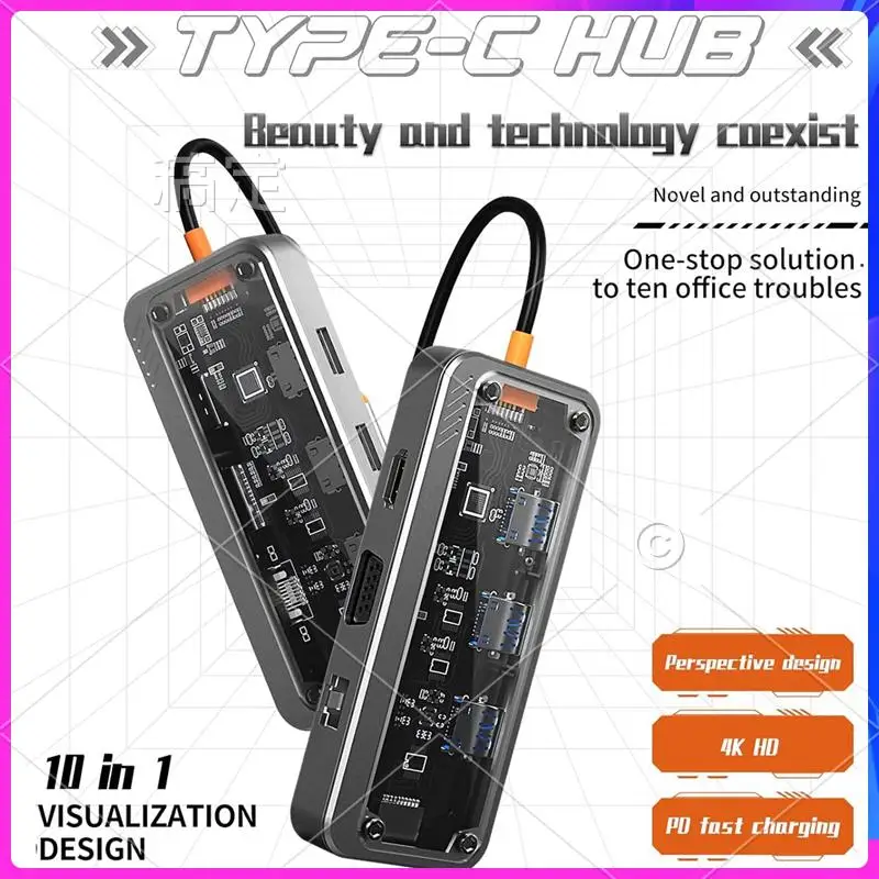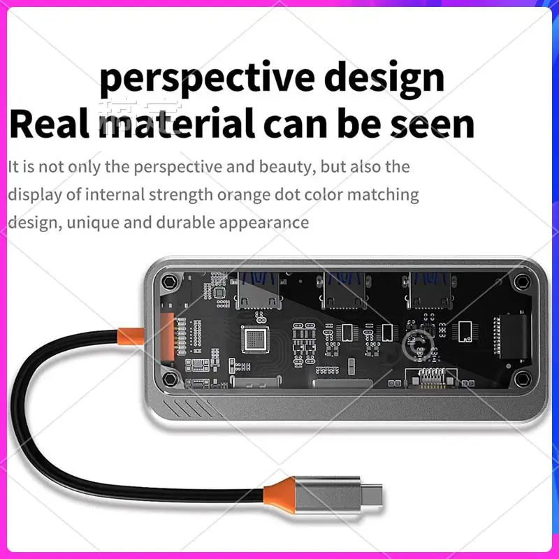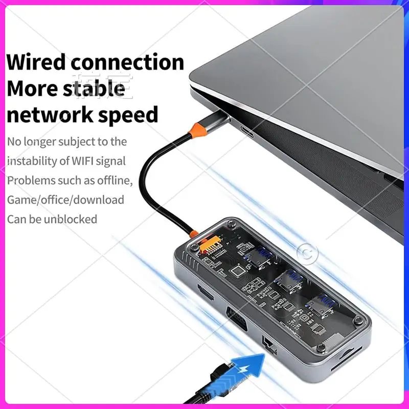 [100W PD Fast Charging]The transparent docking station provides A powerful 100W PD USB C fast charging port, allowing you to charge your device quick & safe. Please note: Please ensure that your laptop'S USB C port supports power delivery protocol.