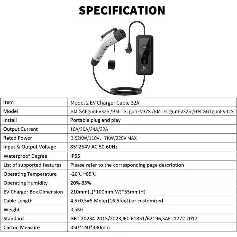 ? 하이 퀄리티 및 안전: 견고하고 내구성이 뛰어나며 과전류 보호, 과전압 보호, 저전압 보호, 누출 방지, 과열 보호, IP55 방수 등급 및 기타 안전 보호 조치. 충전 스테이션의 표시등은 다양한 충전 단계를 표시하고 경고합니다.