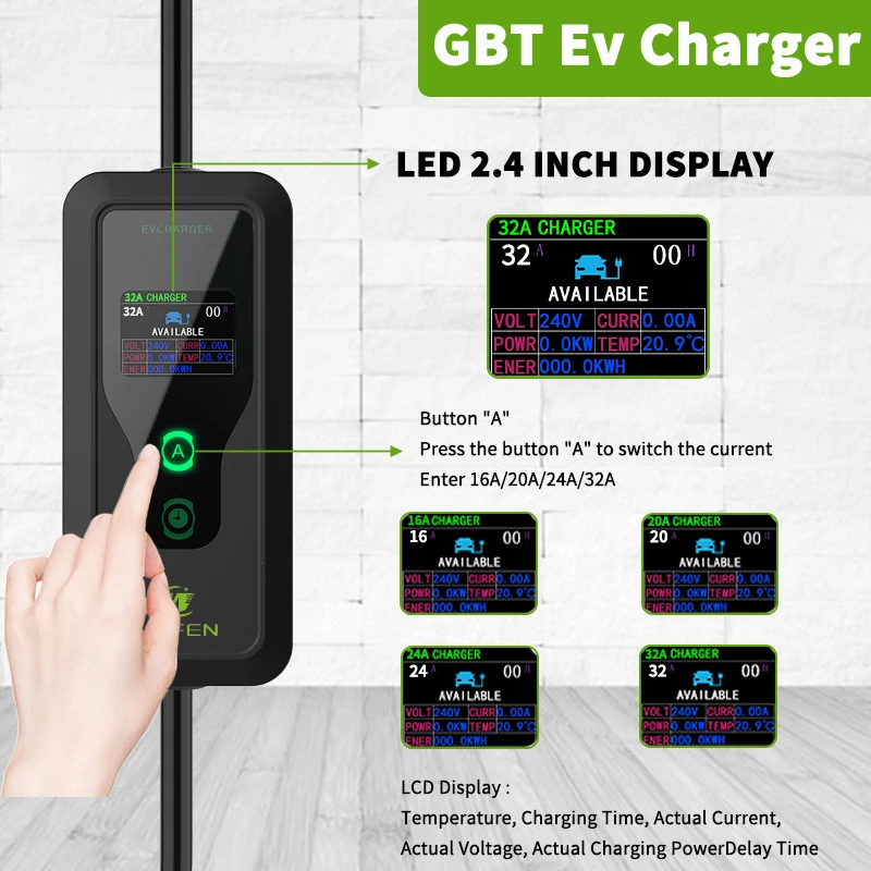 현재 설정: 당사 제품은 16A20A24A32A 의 전류로 설정할 수 있습니다. 32A 는 EV를 빠르게 충전하여 전류를 전환하려는 경우 시간과 연료 비용을 절약 할 수 있습니다. 차량에 충전기를 꽂기 전에 설정해 주십시오.