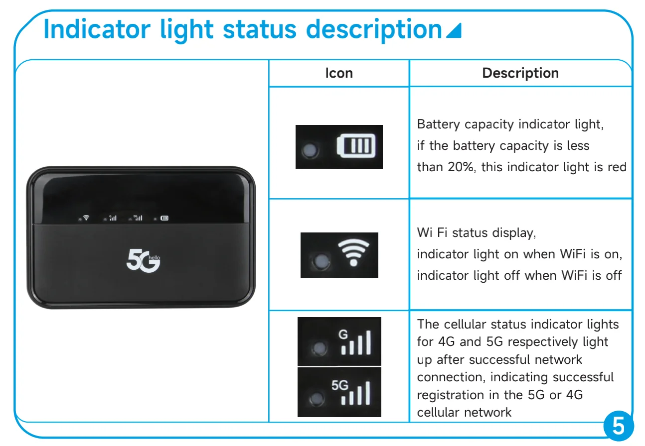 | Feature 5 | portable 5g mifi router |