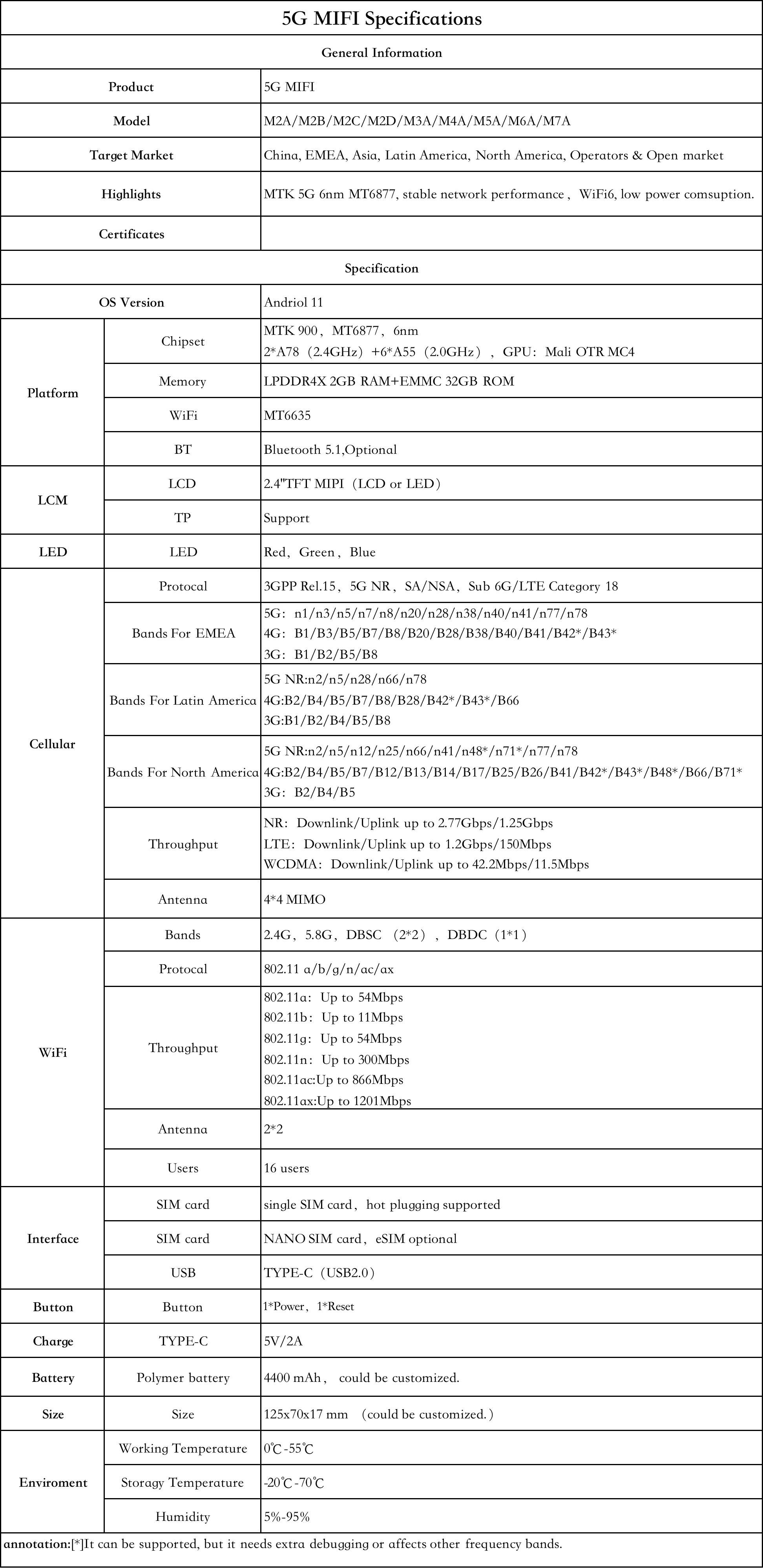 | Feature 21 | Support OEM/ODE Hardware, Software, Shell, Color, Logo, 5G Band Customization |