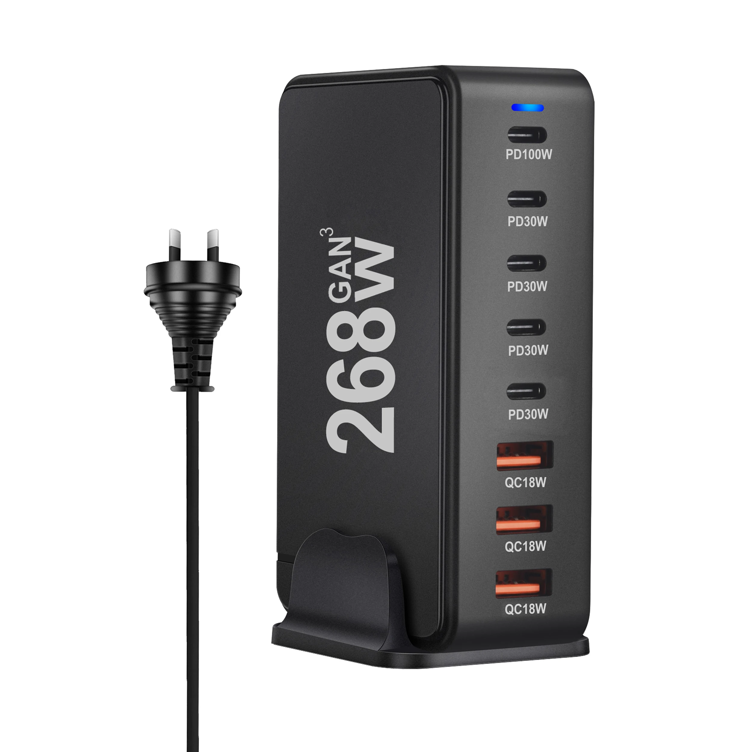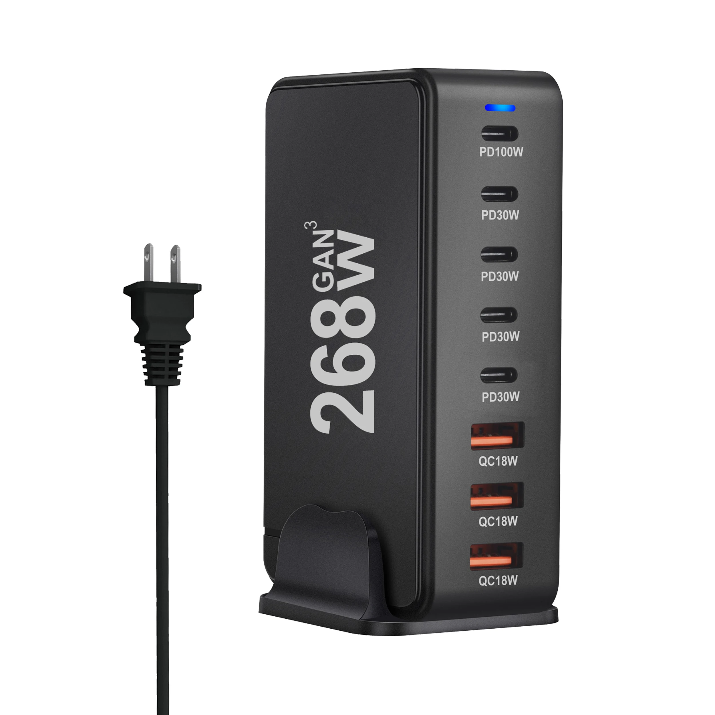 268W 데스크탑 GaN 충전기 8포트 USB Type C PD 충전기 고속 충전 3.0 USB Type C 고속 충전기 모바일 USB 충전기