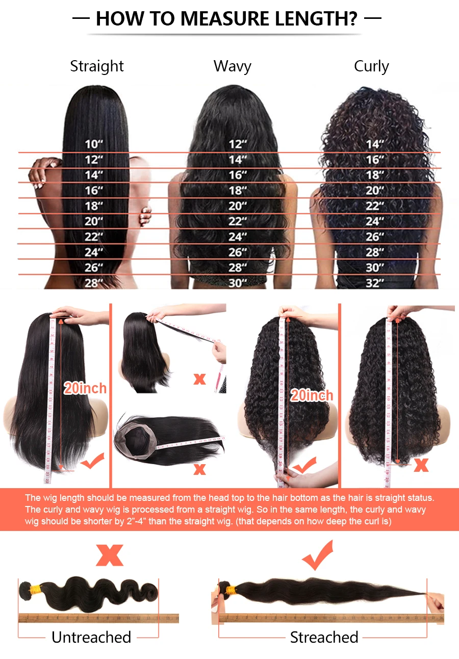 A: 배송 전에 모발 유형과 길이를 다시 확인합니다. 웨이브 및 곱슬머리의 경우 직선으로 늘린 다음 머리카락을 위에서 끝까지 측정하세요.