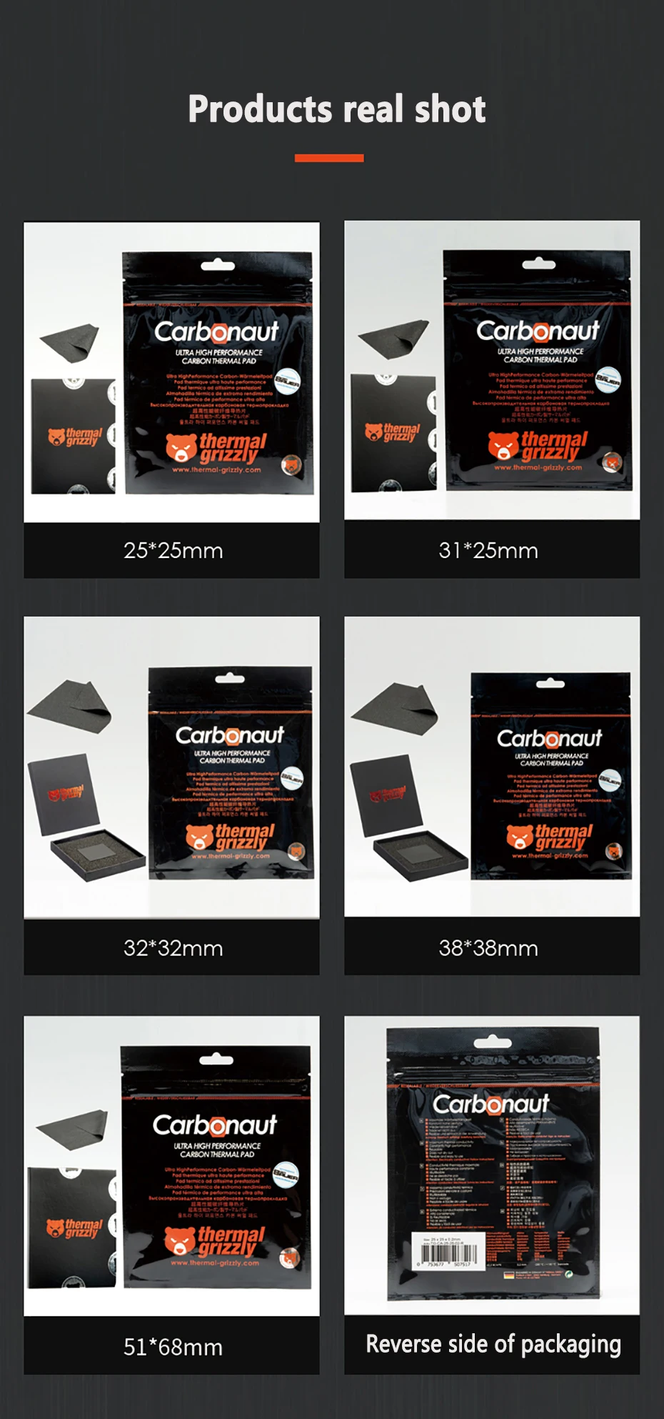 Thermal Grizzly Carbonaut hightech carbon thermal pads can be used as an excellent alternative to midrange thermal compounds. They have the exclusive advantage of being reusable, with A very elastic and adaptable surface and very high thermal conductivity. Even the slightest unevenness can be compensated very well. Its special developed polymer results in its flexibility and its soft 'gap filler' properties. The carbon fiber structure ensures excellent thermal conductivity. Note: Carbonaut is electrically conductive! Make sure there'S no contact beetween thermal pad and transistors or transformers!