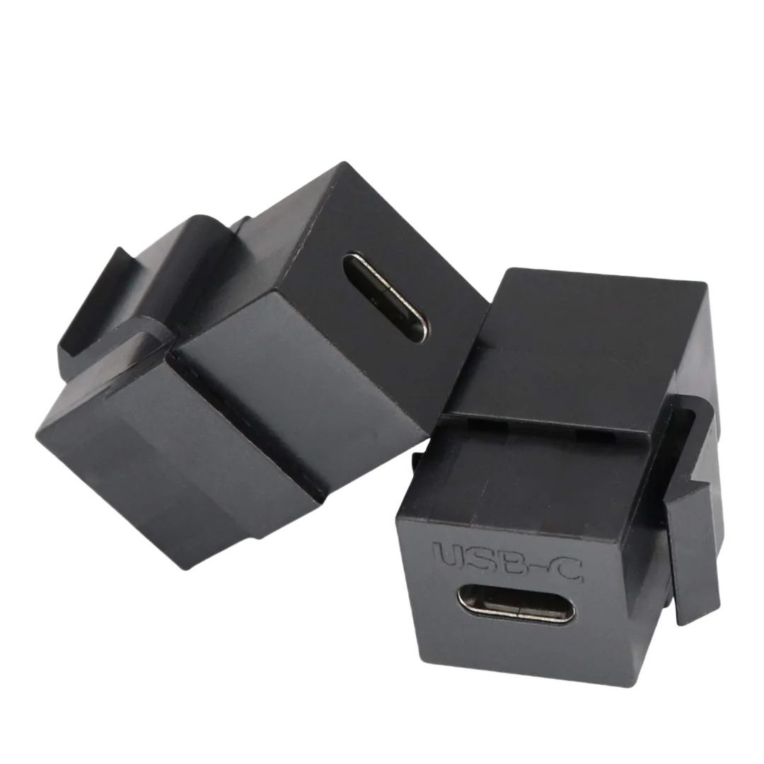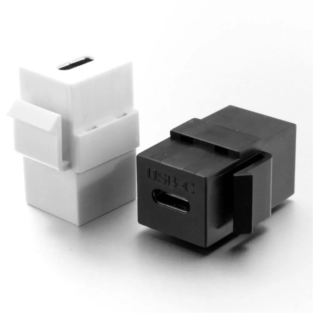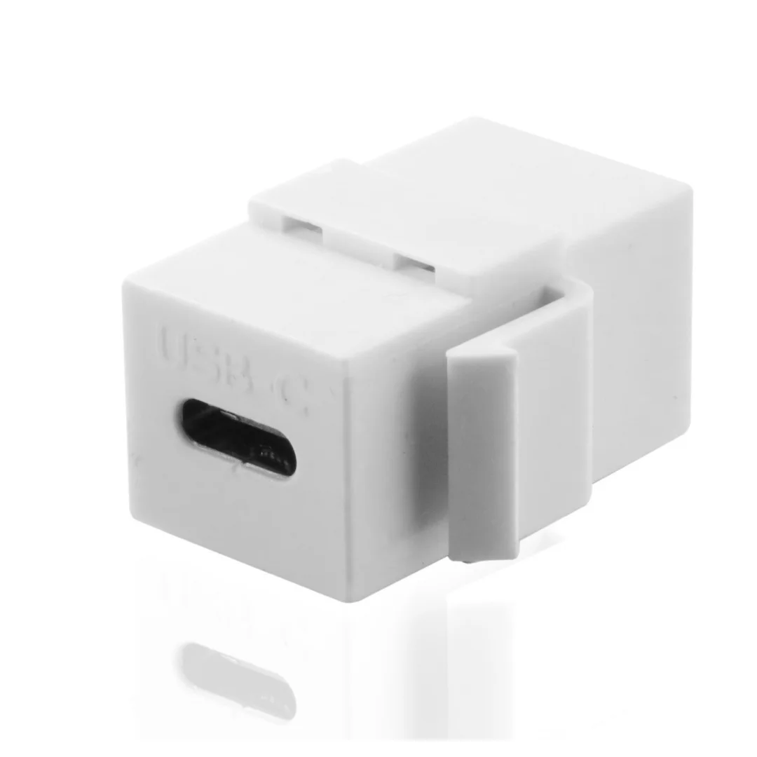 최신 유형 C 키스톤 잭. 각 끝에 암형 C 암 커넥터가 있어 USBC 케이블을 벽면 플레이트에 연결하는 간단하고 안전한 방법을 제공합니다. 수직 가이드 웨지는 표준 웨지 개구부의 벽면 또는 패치보드와 호환됩니다.
