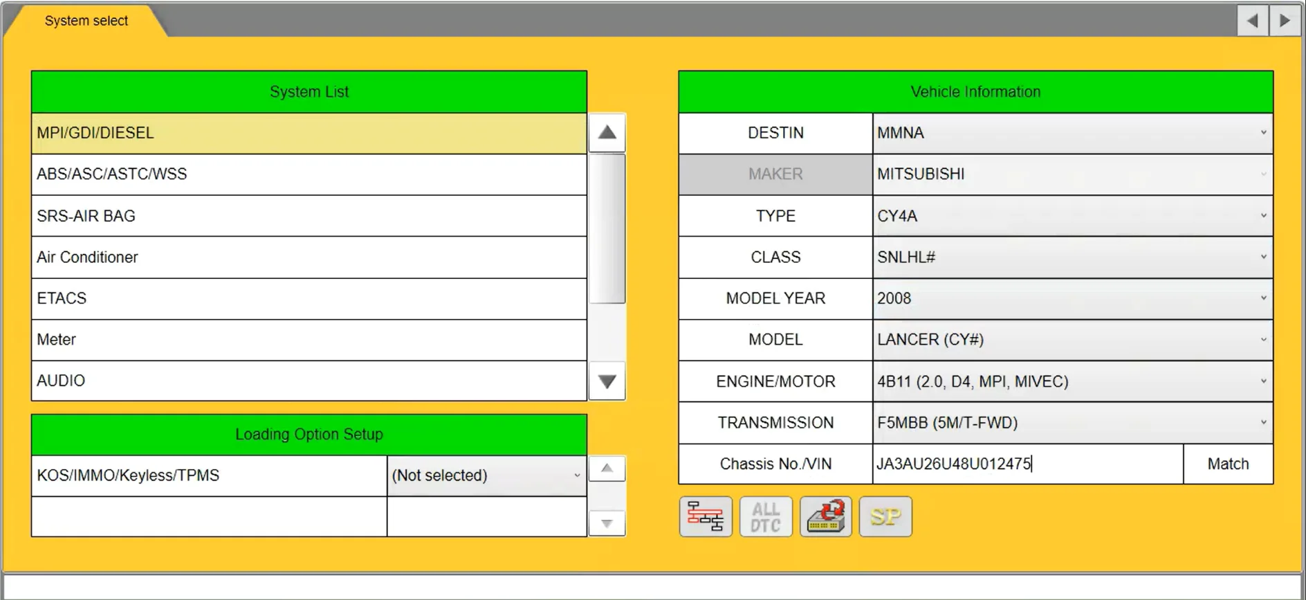 · diagnostics of all electronic systems of Mitsubishi vehicles;