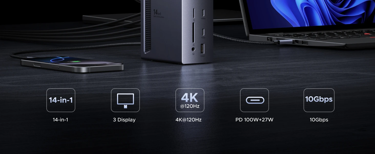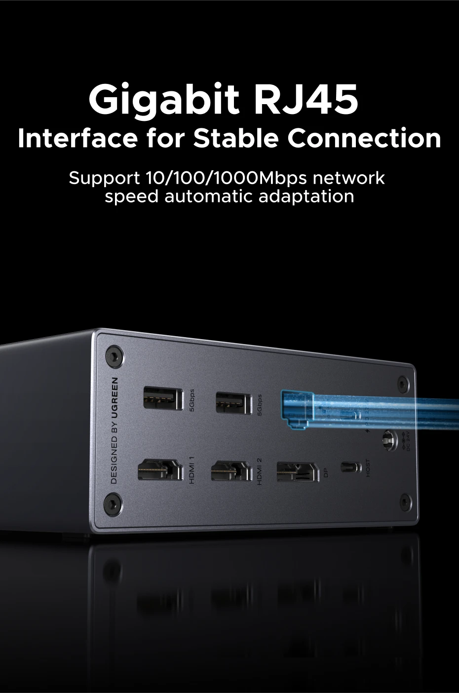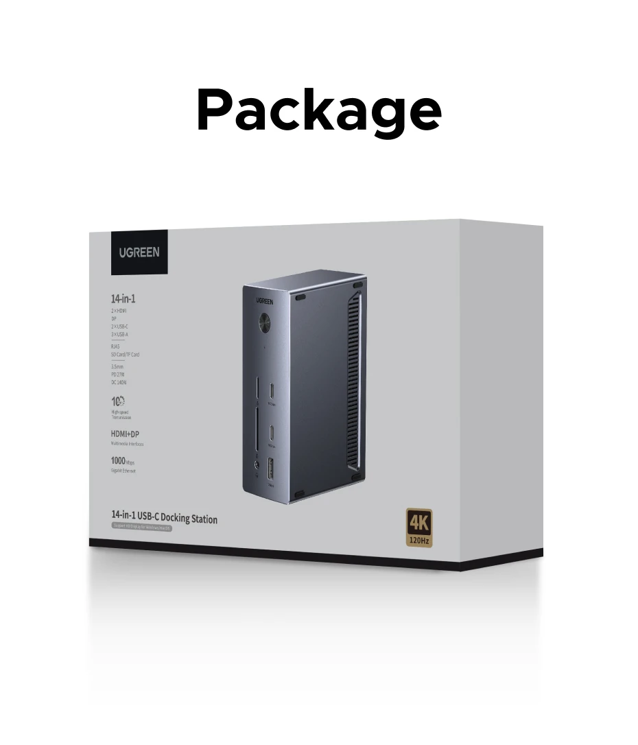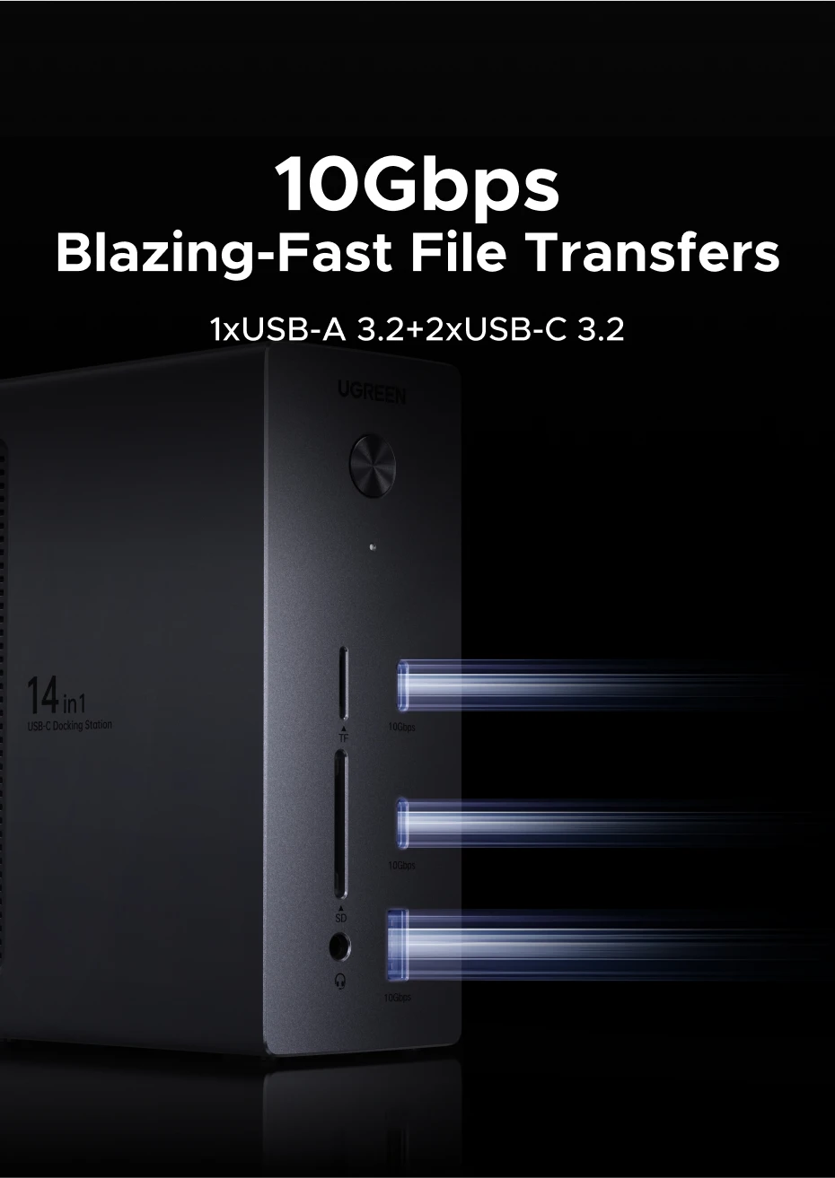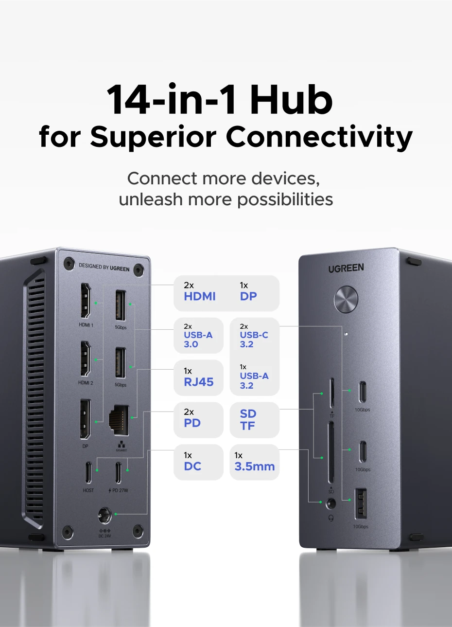UGREEN 14in1 USB 허브 도킹 스테이션 타입C to PD 4K120Hz 2xHDMI 노트북 SD/TF RJ45 10Gbps 4K60Hz 충전